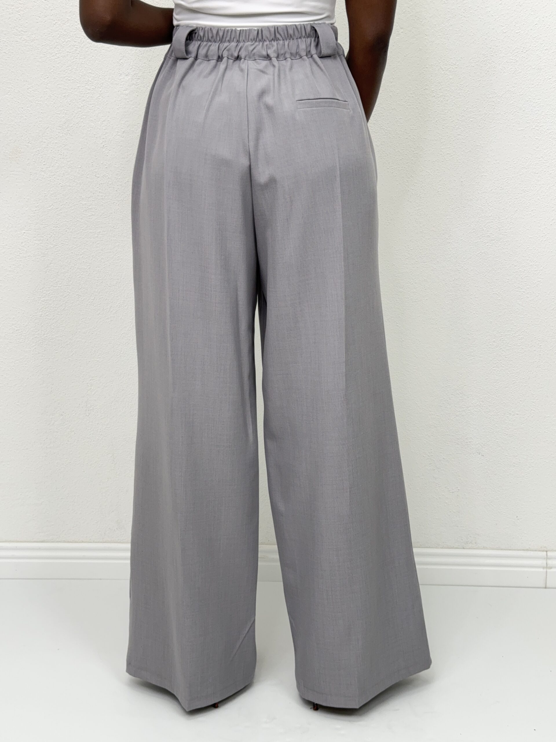 Pantaloni elasticizzato a palazzo a tinta unita con dettaglio di cinturino sul punto vita incorporato
