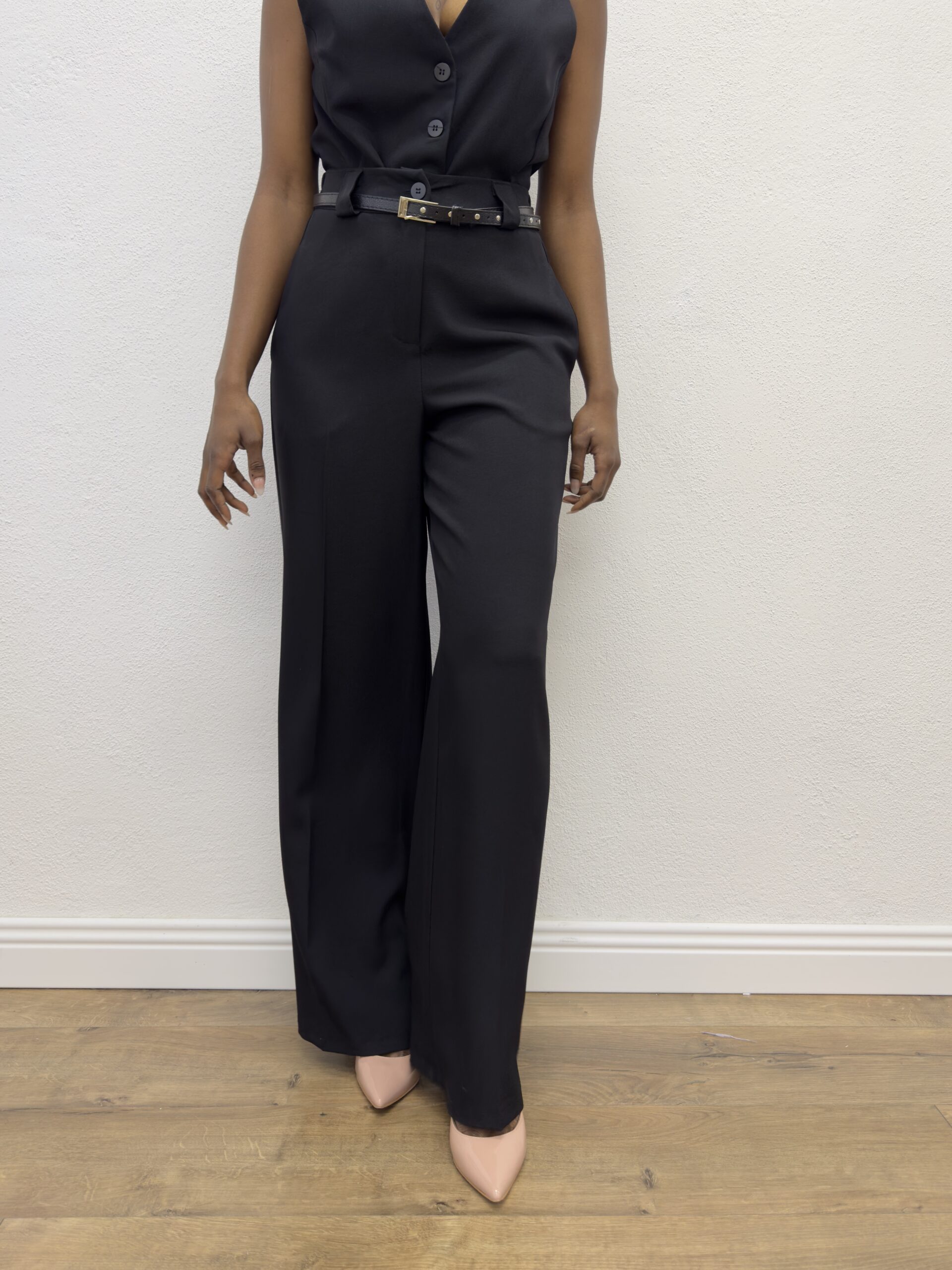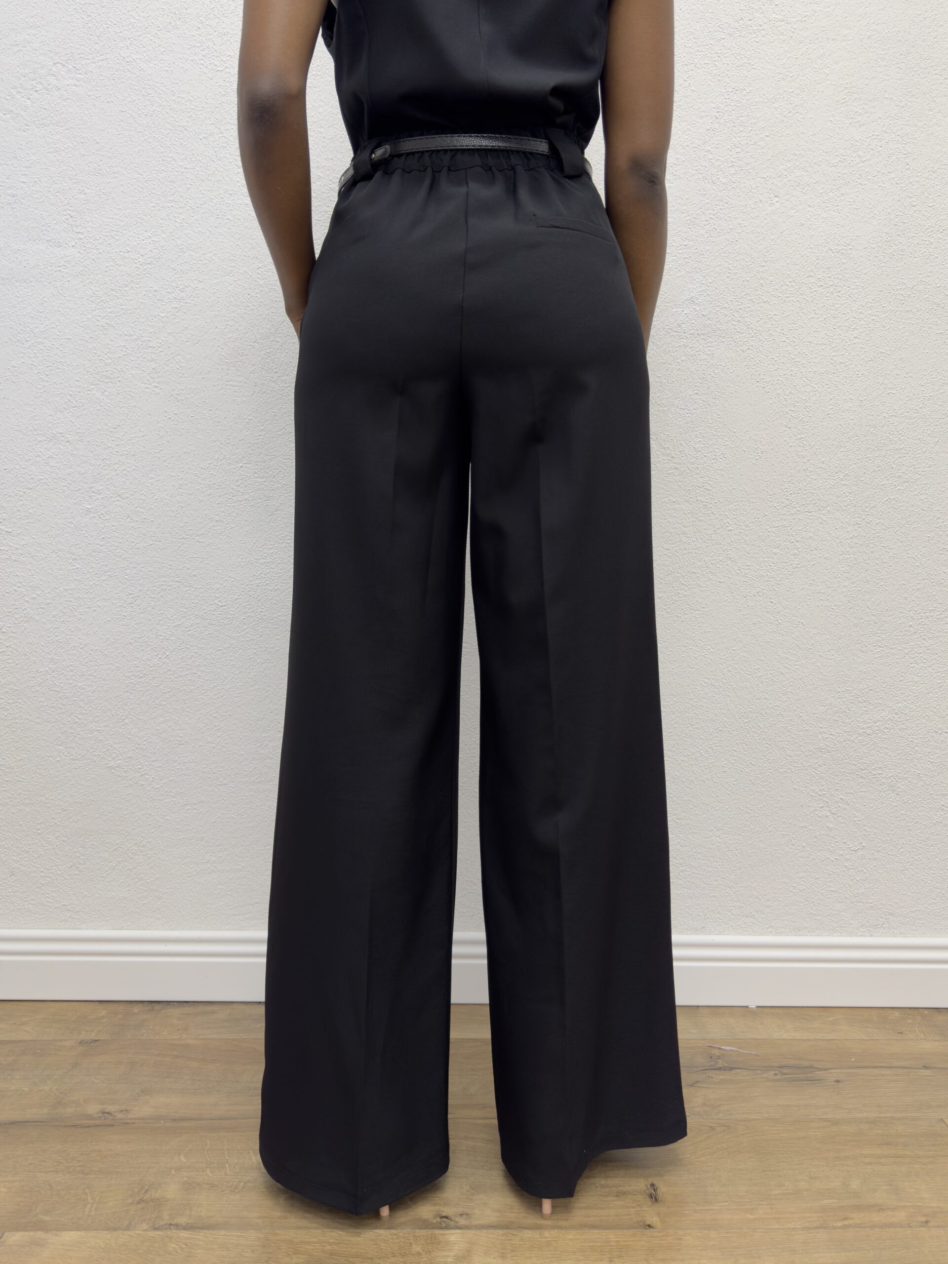 Pantaloni elasticizzato a palazzo a tinta unita con dettaglio di cinturino sul punto vita incorporato
