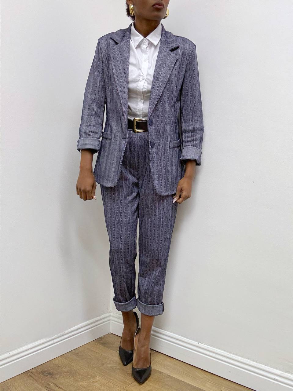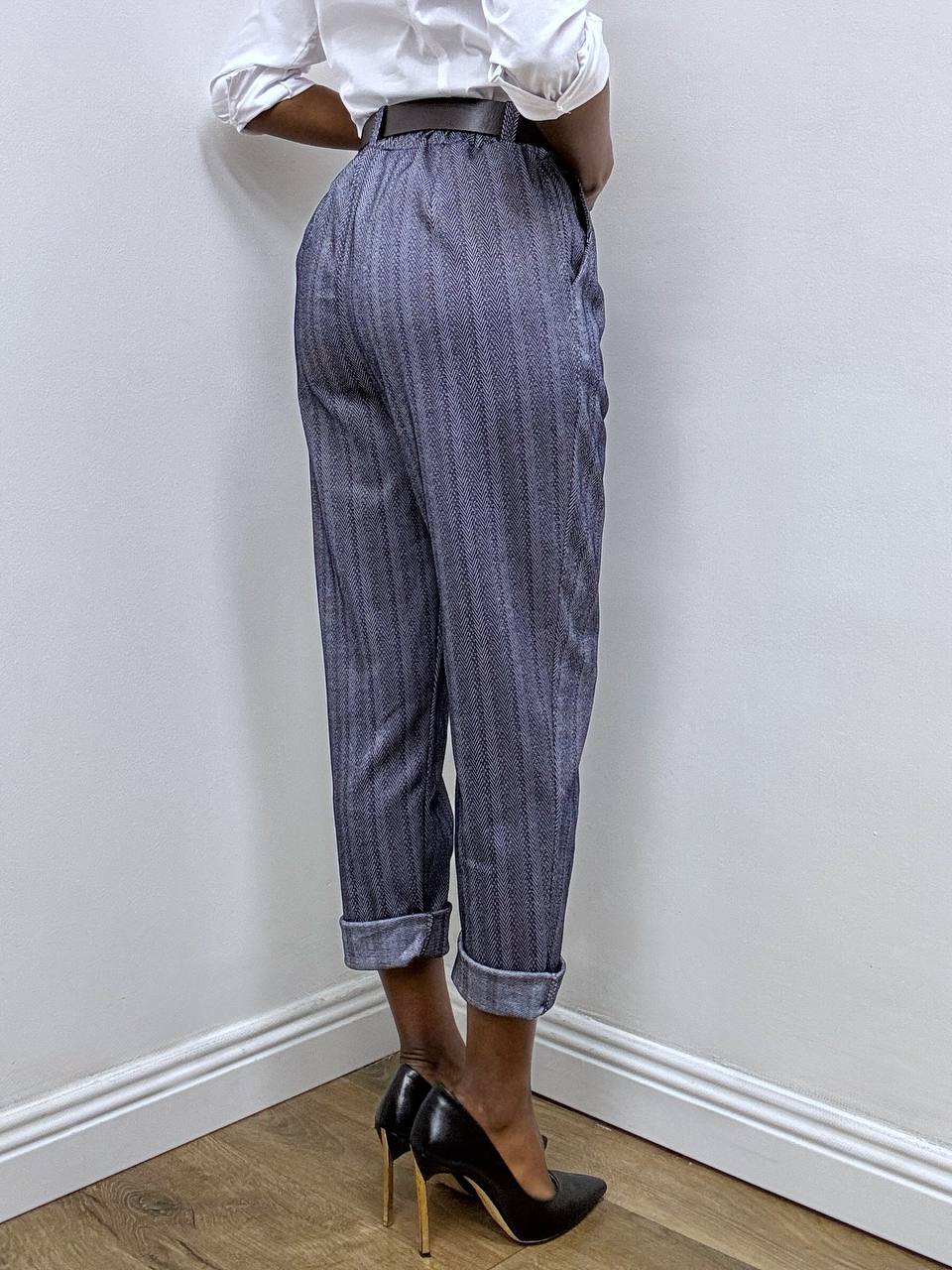 Pantalone spigato dal design raffinato, realizzato in tessuto elasticizzato per garantire comfort e libertà di movimento. La vita elasticizzata assicura una vestibilità pratica e confortevole, completata da passanti per cintura che permettono una regolazione personalizzata. Le taschine laterali aggiungono funzionalità senza rinunciare allo stile. Un capo versatile, ideale per outfit curati ma dall’anima contemporanea.