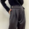 Pantalone con chiusura laterale da bottoni  a gamba larga.