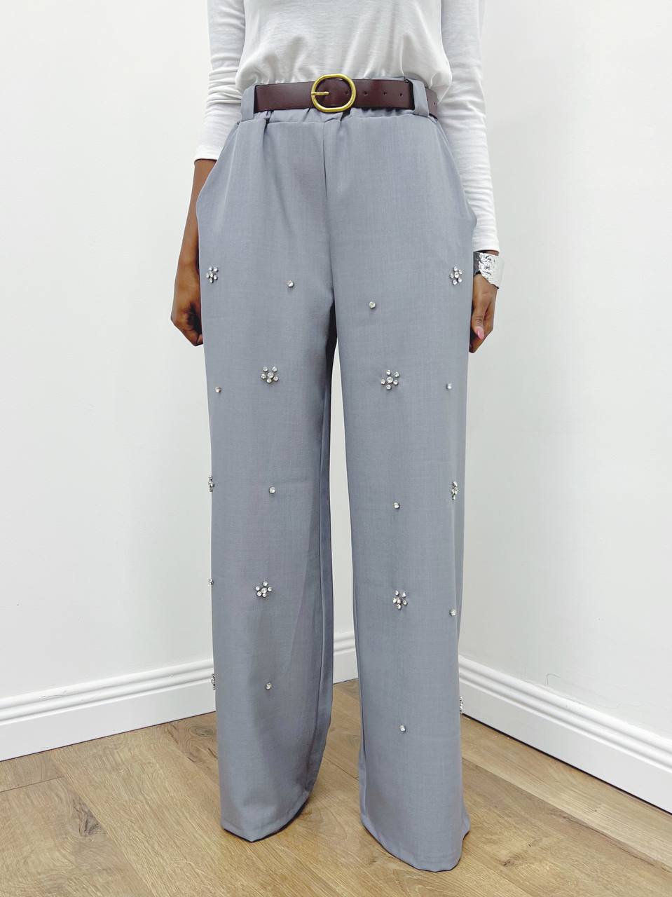 PANTALONE ELETTRA CON ZIRCONE GRIGIO
