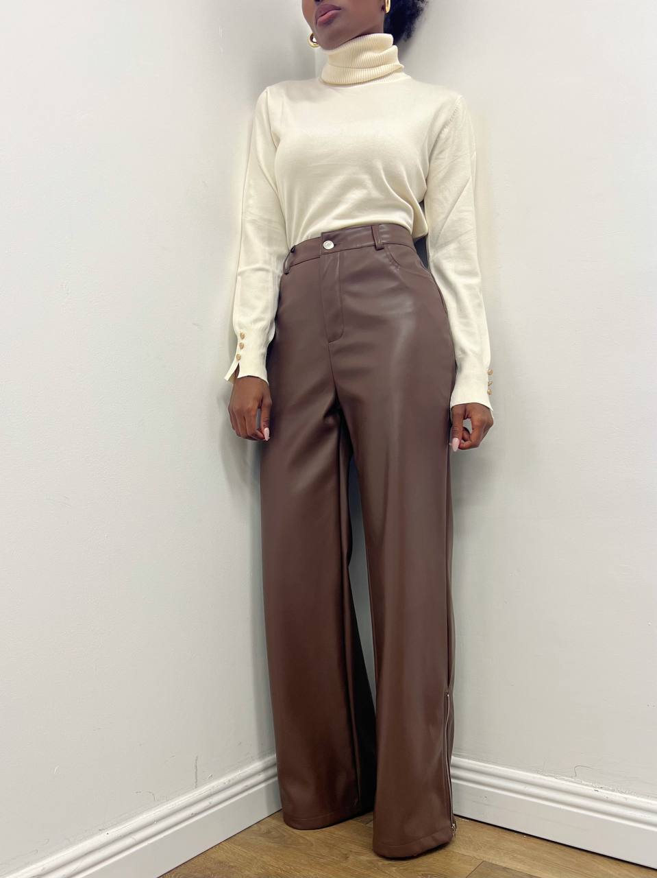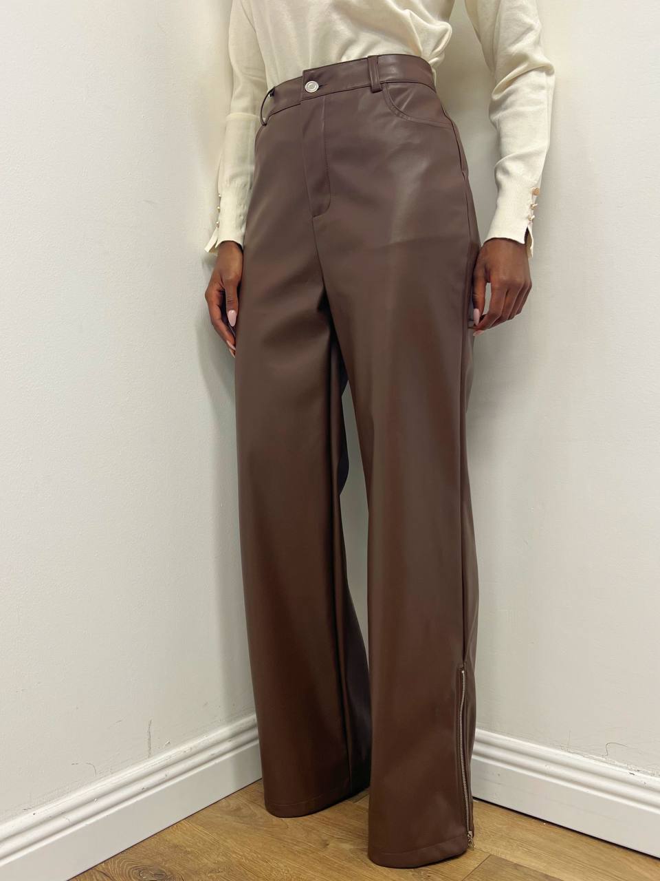 PANTALONE ELISEO IN ECOPELLE CIOCCOLATO