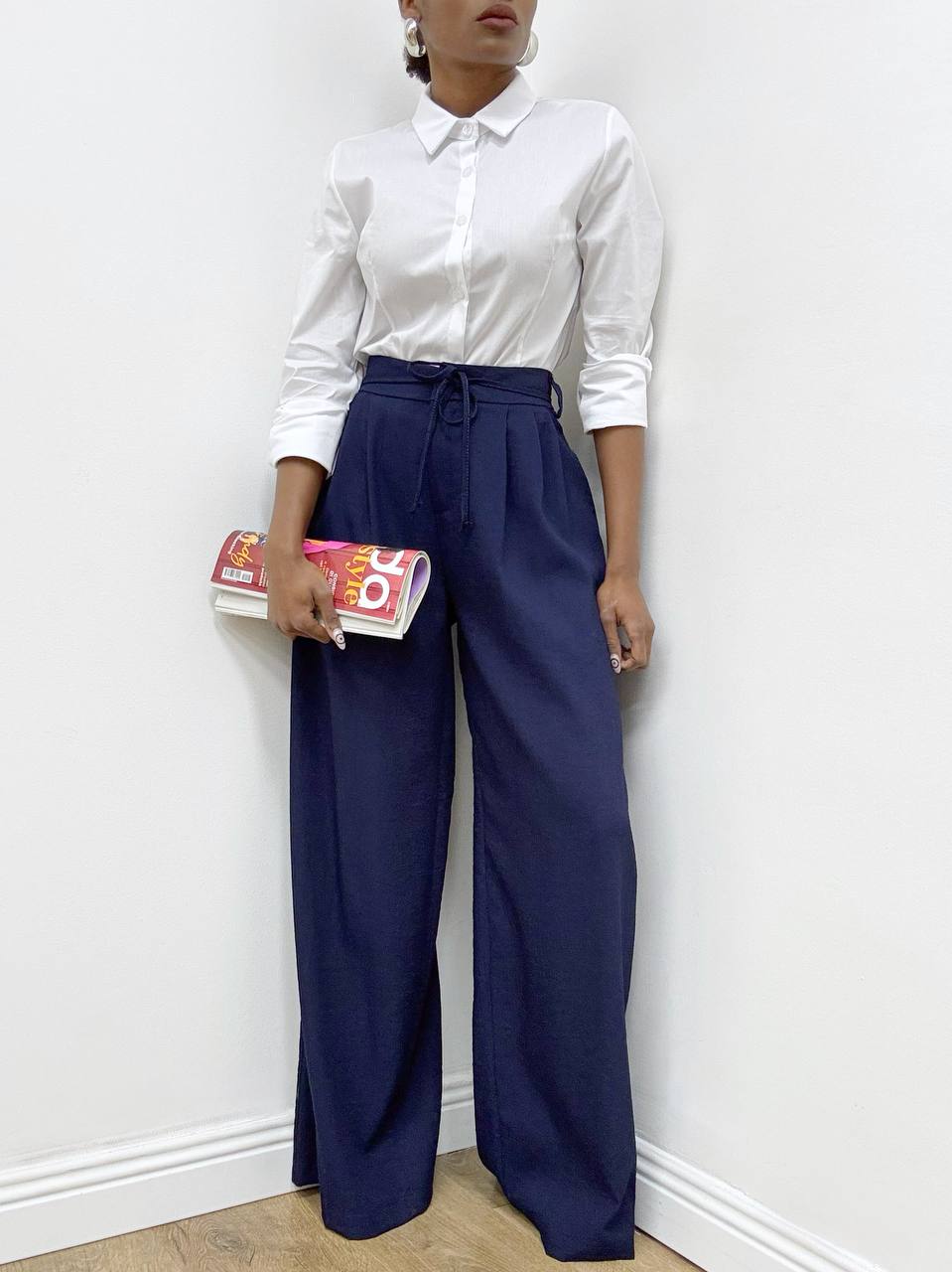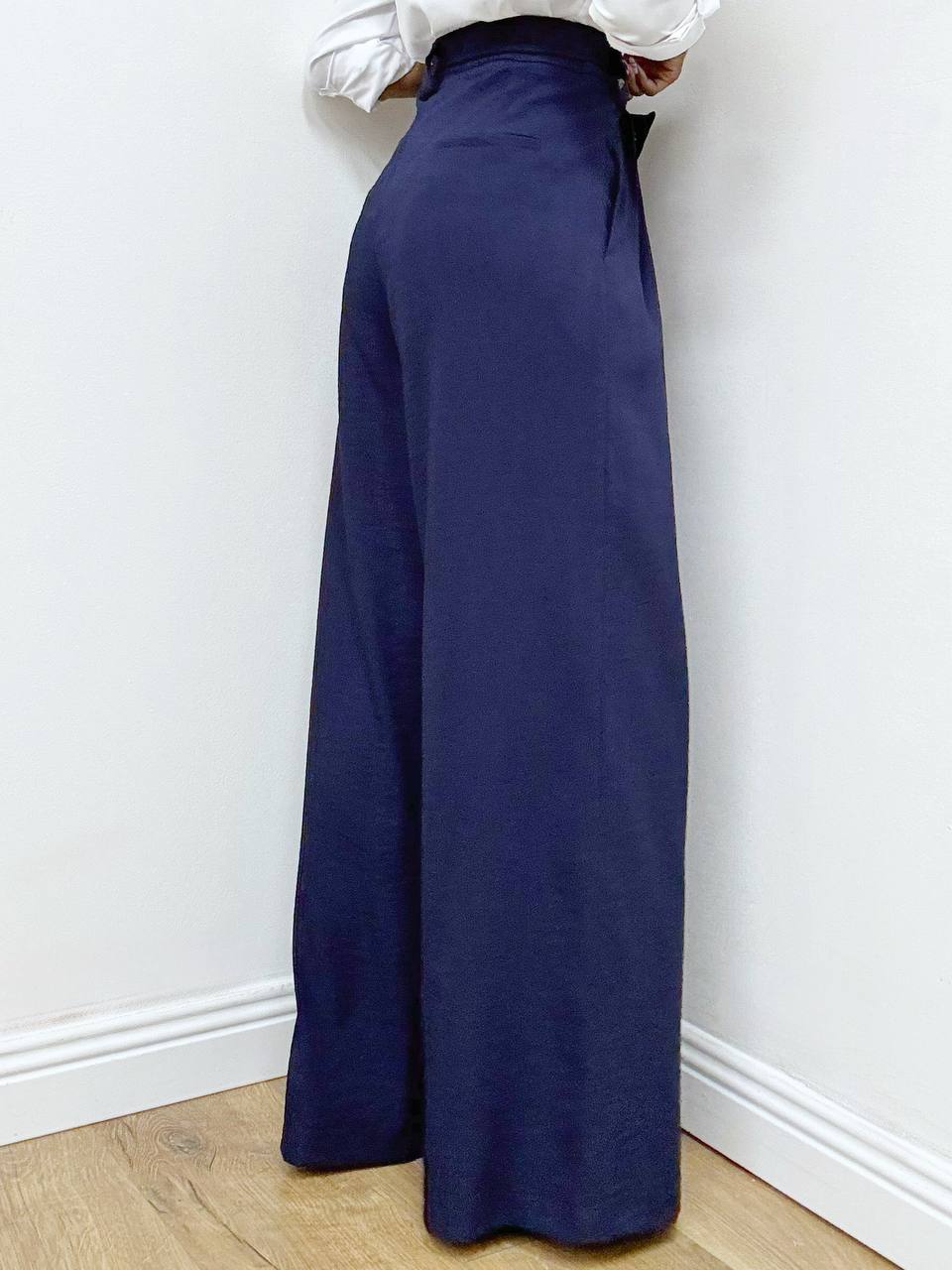 Pantalone a palazzo dal taglio elegante e contemporaneo, perfetto per creare look raffinati ma confortevoli.
