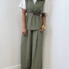 Il punto vita elasticizzato assicura una vestibilità comoda e adattabile, valorizzando la silhouette con naturalezza. La chiusura con bottone e zip completa il design con un dettaglio pratico e curato, mantenendo un aspetto ordinato e pulito.