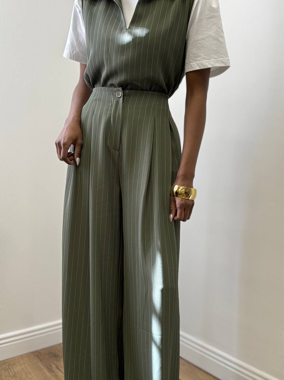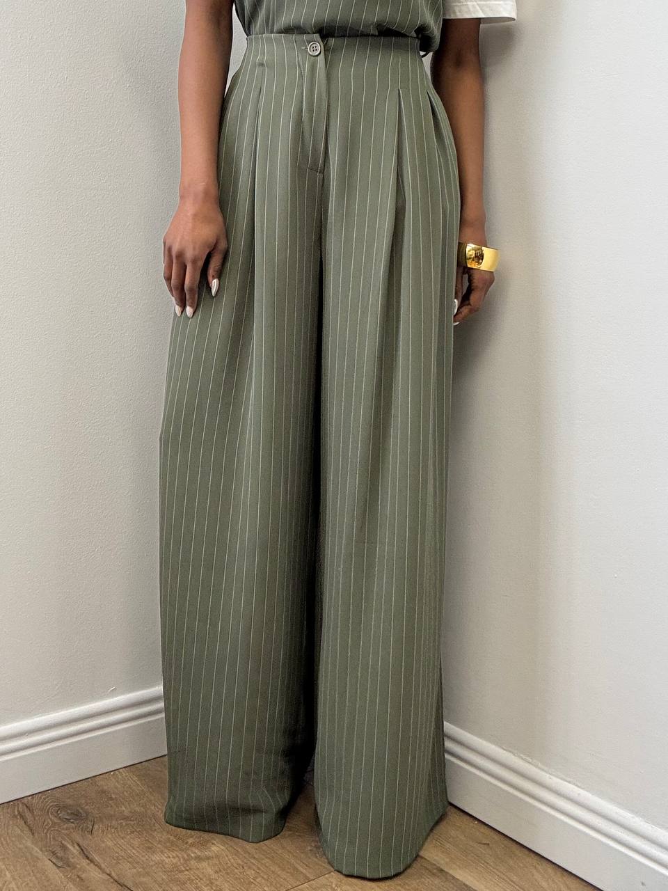 PANTALONE OLIVIA GESSATO VERDE