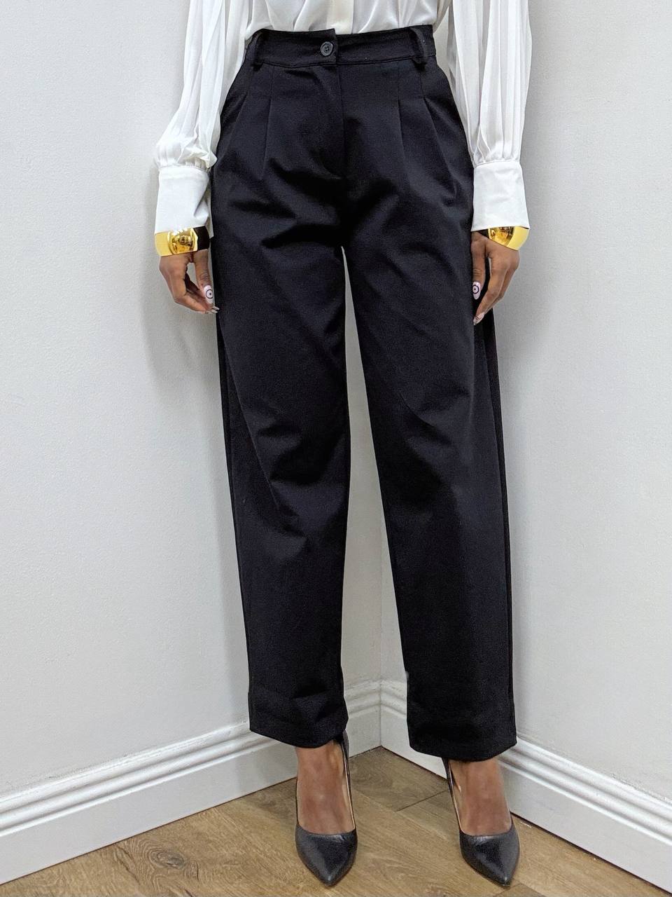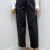 Pantalone dal taglio carrot, caratterizzato da una linea contemporanea che si stringe leggermente verso il fondo. Il modello è valorizzato da pince frontali che donano struttura e migliorano la vestibilità. Dotato di due taschine laterali, presenta una chiusura frontale con bottoni e zip per un look pulito e funzionale. Un capo versatile, ideale per outfit casual raffinati o abbinamenti più sartoriali.