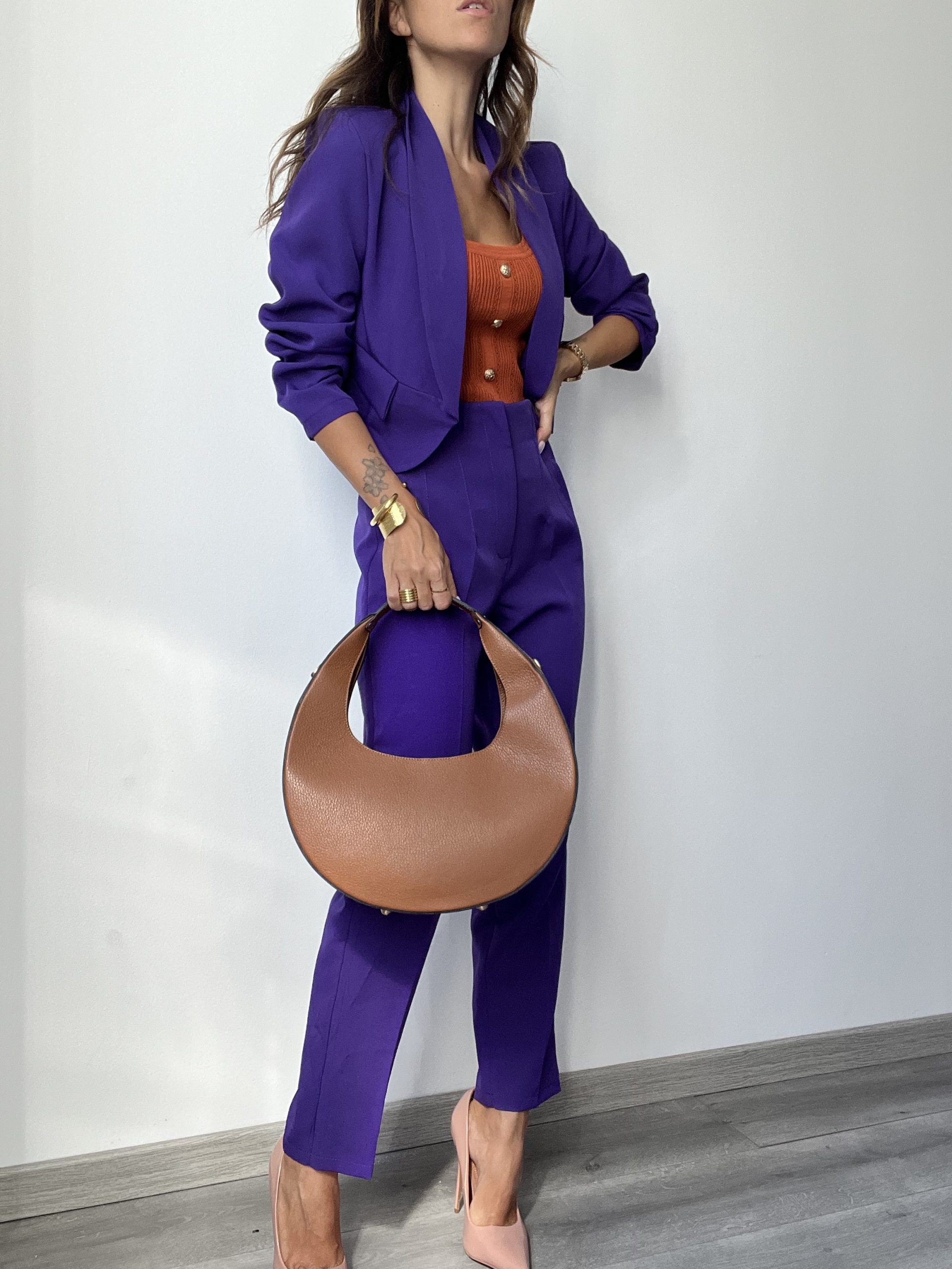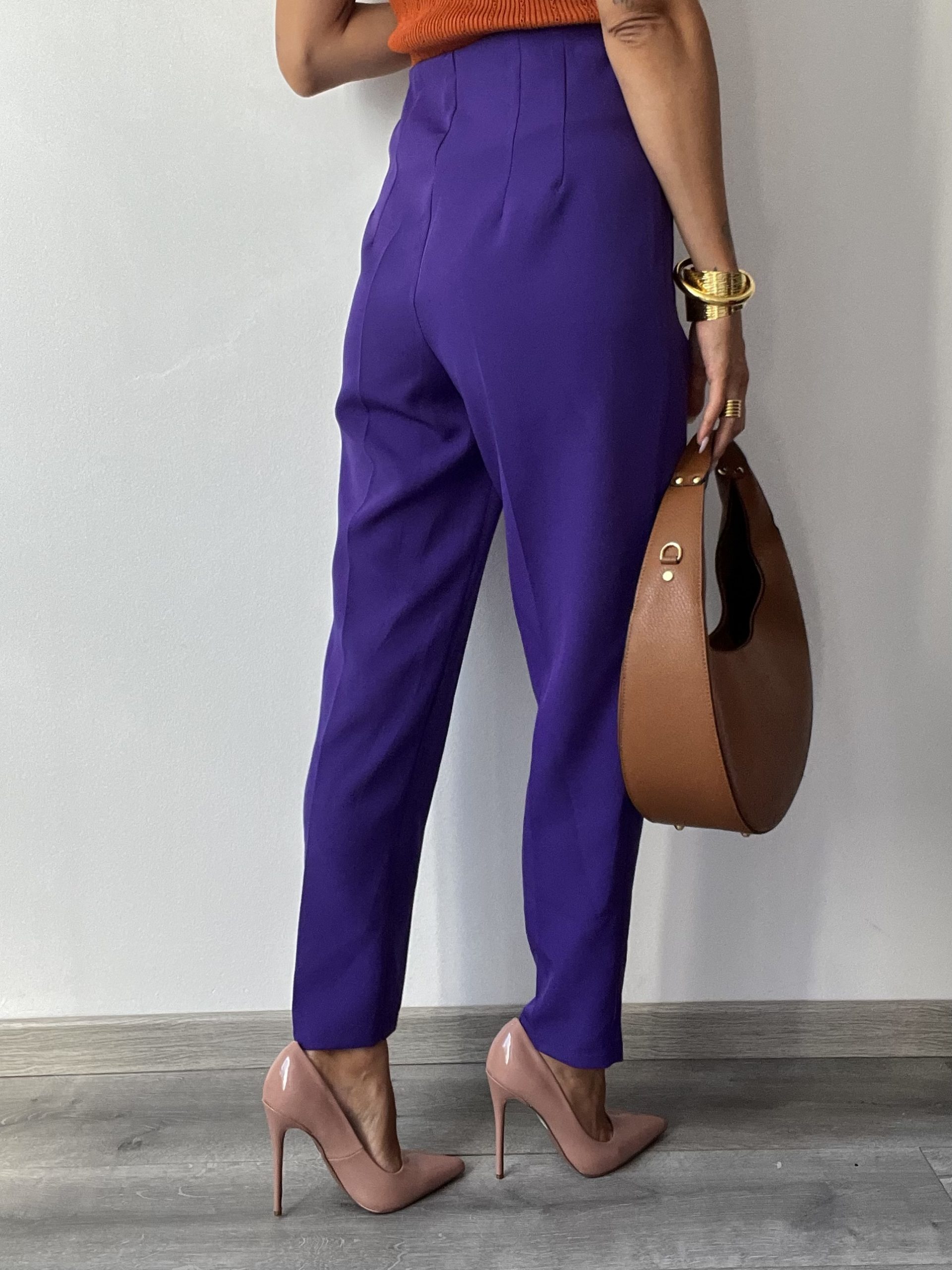 Pantalone Made in Italy a palazzo tinta unita caratterizzati da:
