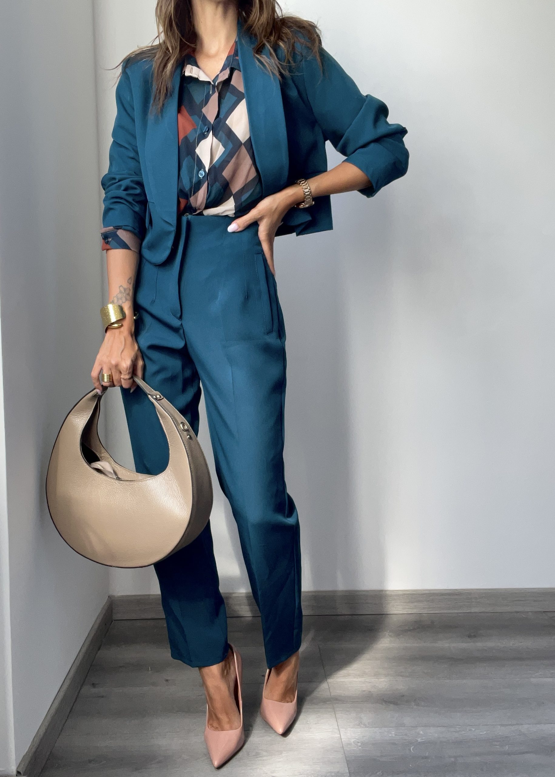 Una cucitura laterale che percorre tutta la lunghezza del pantalone e da tasche finte cucite su entrambi i lati