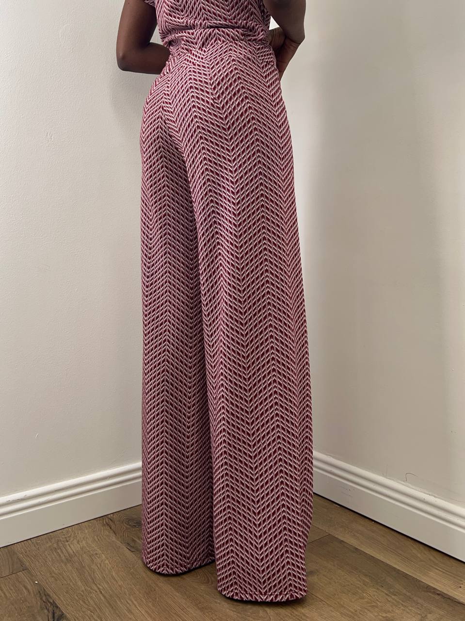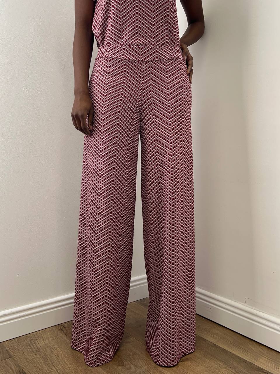 Pantalone a palazzo con vita elasticizzata con stampa geometrica su tutta la lunghezza. Elasticizzata.