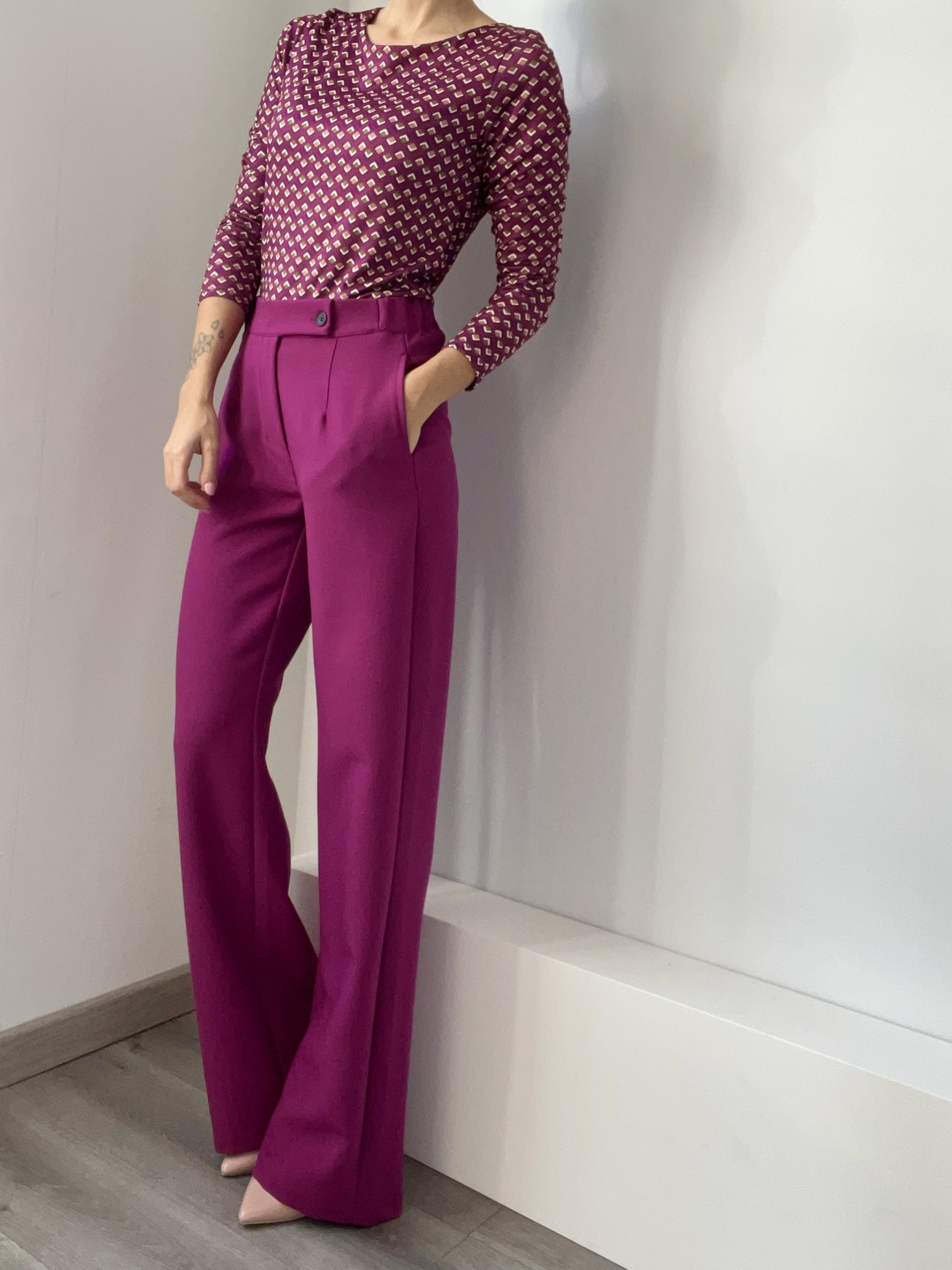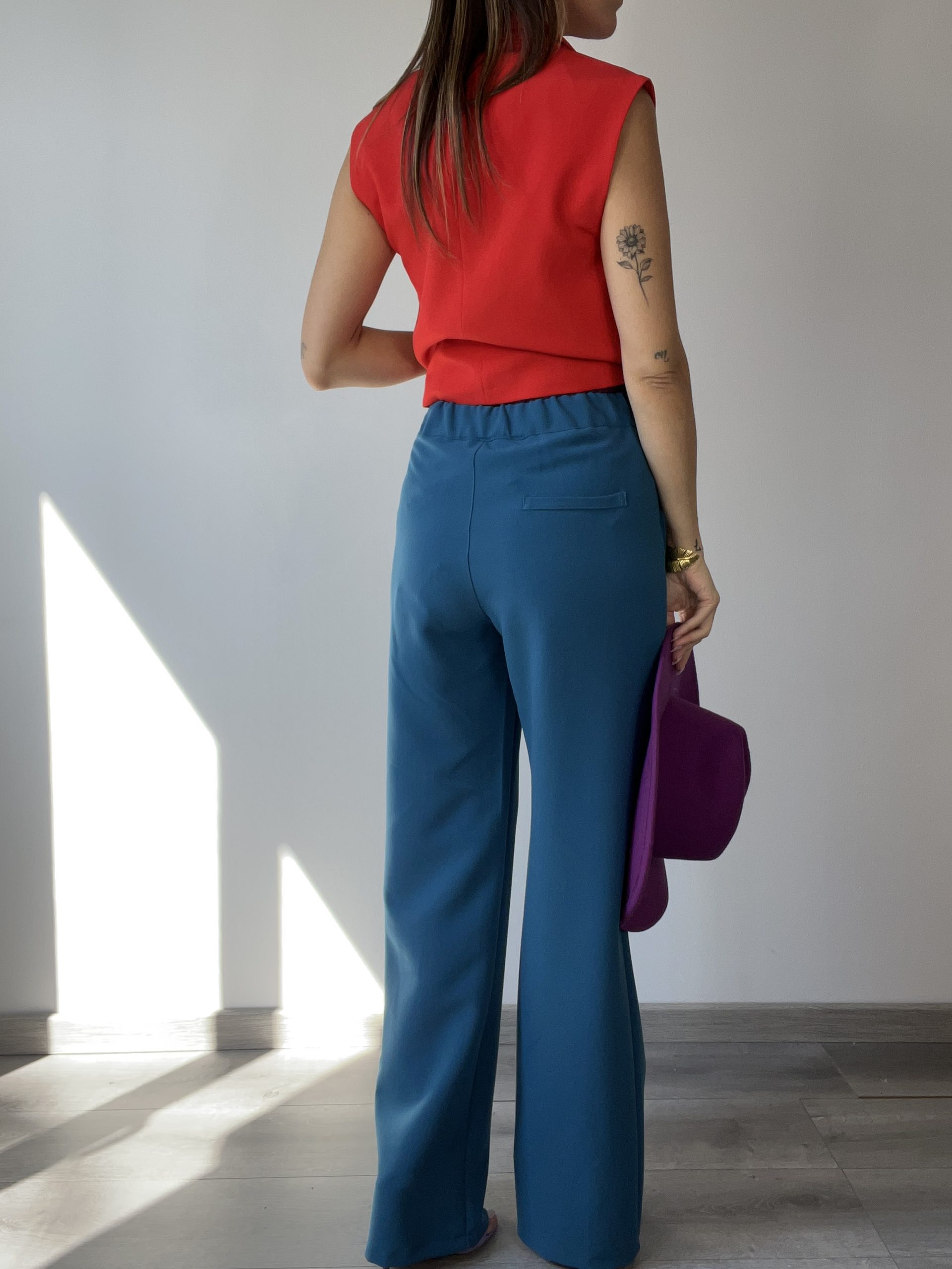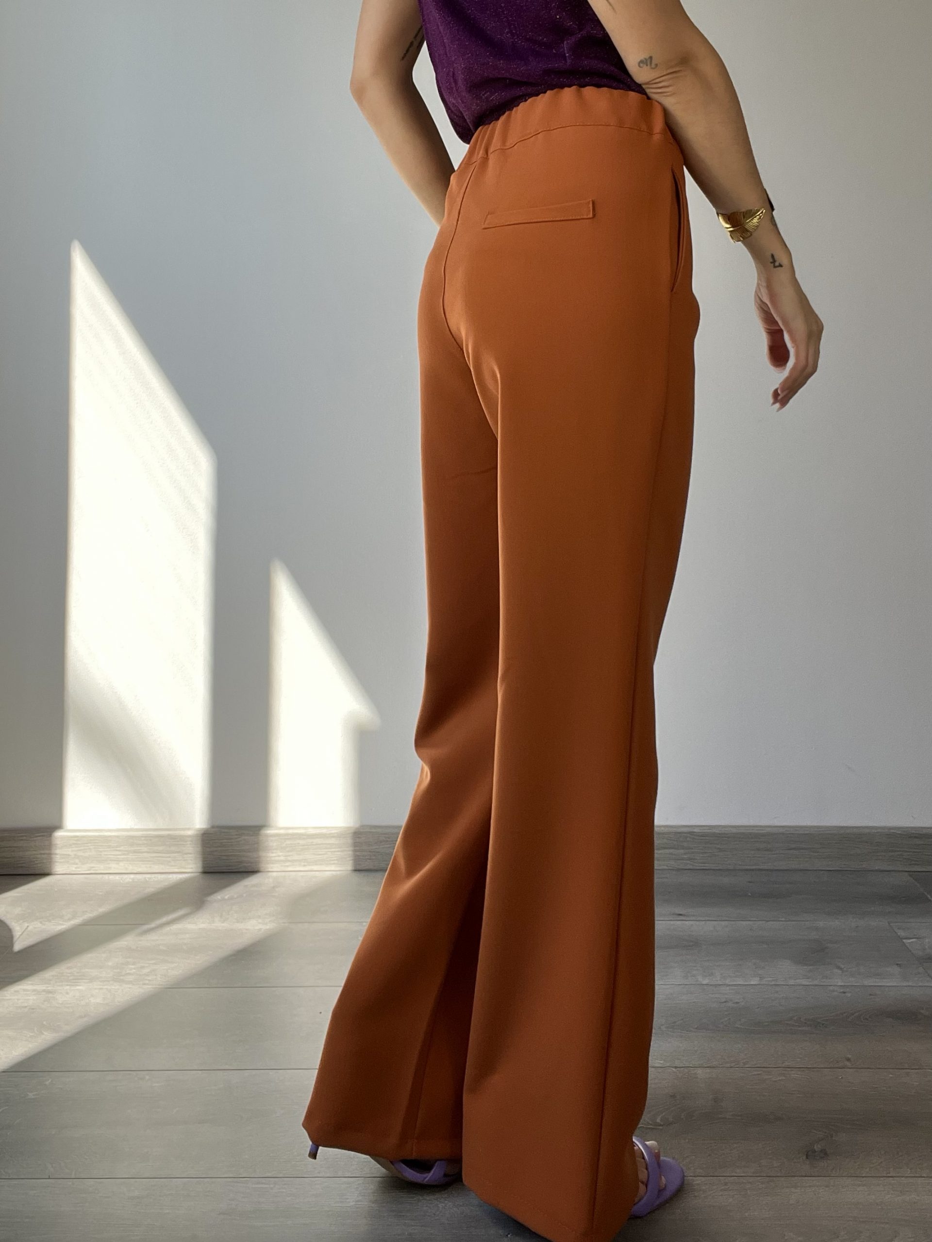 Pantalone Made in Italy  a vita alta con elastico sul retro e vestibilità perfetta.