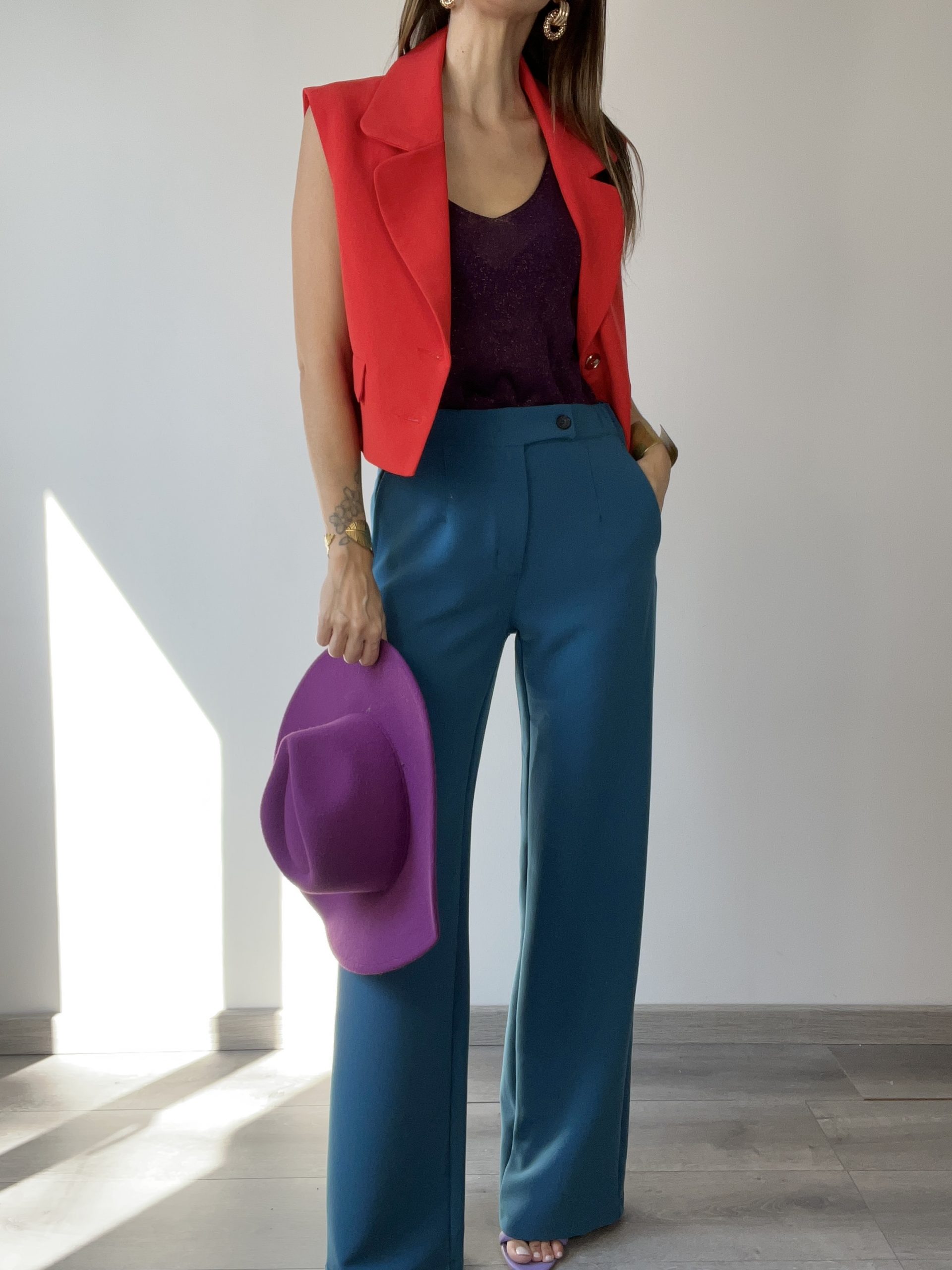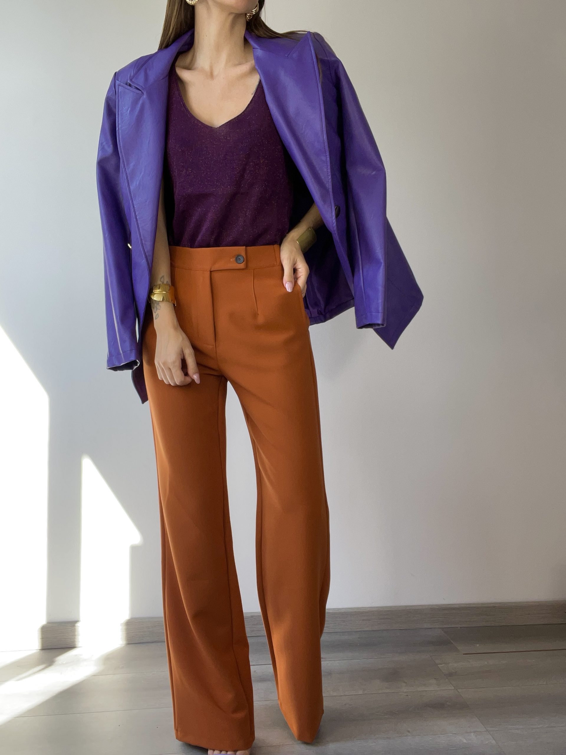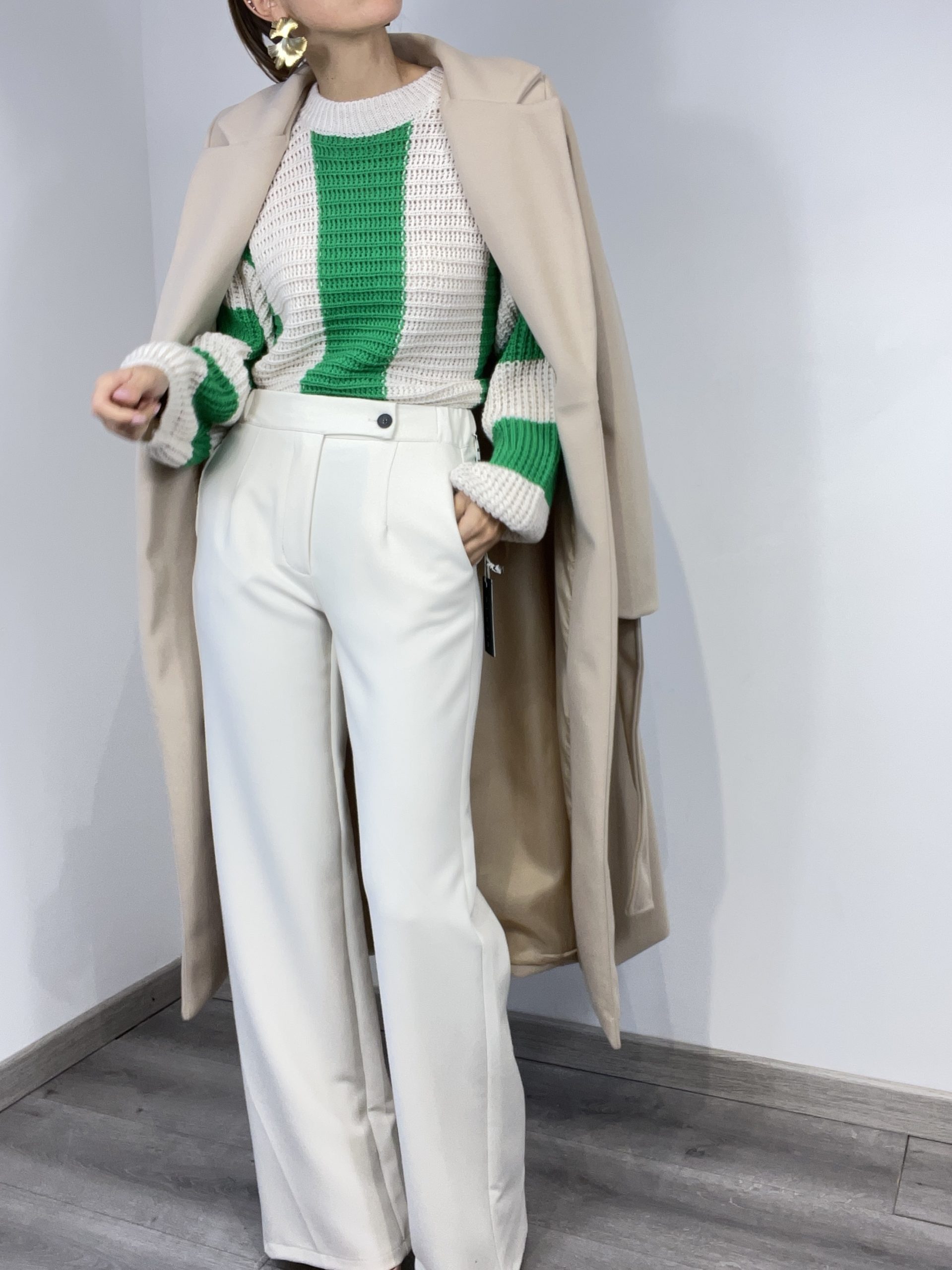 Pantalone Made in Italy  a vita alta con elastico sul retro e vestibilità perfetta.
