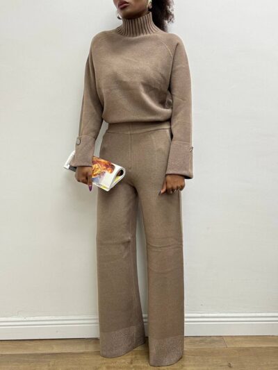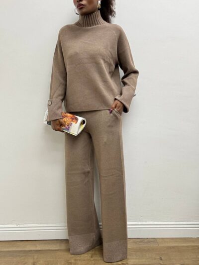 Il modello a palazzo presenta una linea ampia e dritta che scivola elegantemente lungo la gamba, valorizzando la silhouette senza costrizioni.