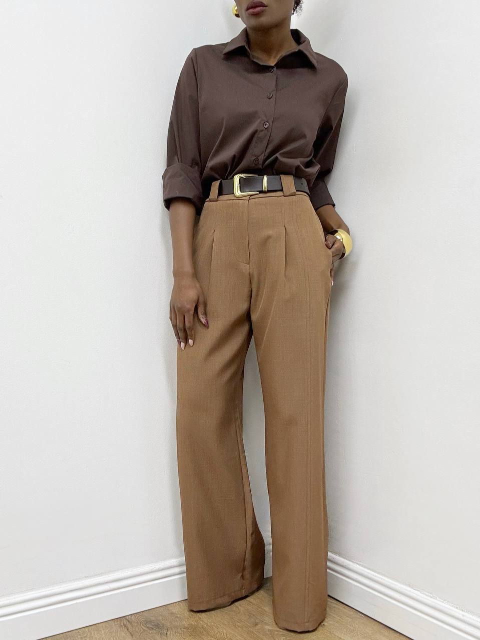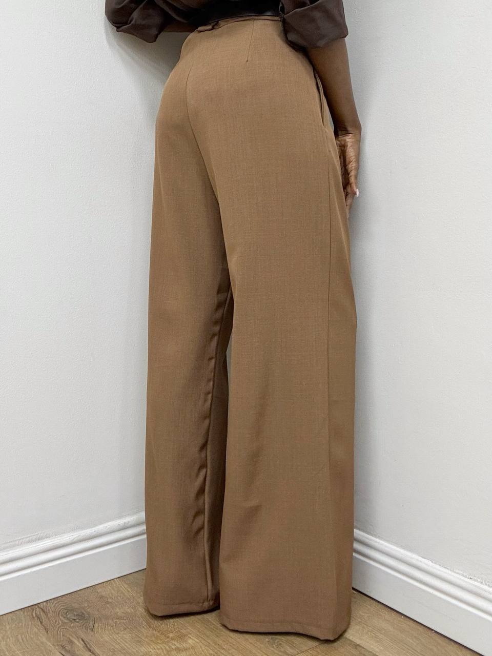 La gamba ampia scende dritta e morbida fino al fondo, regalando un effetto sofisticato e dinamico ad ogni passo. Perfetto sia per outfit formali con blazer e décolleté, sia per interpretazioni più casual con top minimal e sneakers.