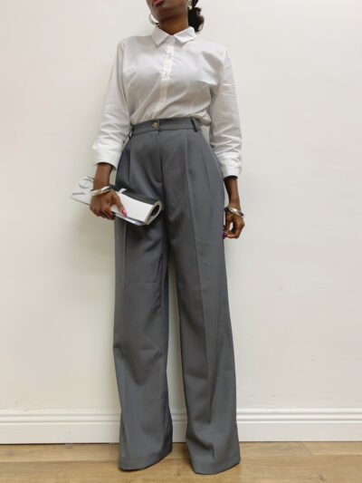 Pantalone a palazzo in tinta unita, dal taglio ampio e fluido che valorizza la silhouette con eleganza e comfort. Dotato di taschine laterali pratiche e passanti integrati in vita, perfetti per completare il look con una cintura. Il design essenziale e raffinato lo rende un capo versatile, ideale da abbinare a camicie, bluse o top per outfit sia formali che casual-chic.