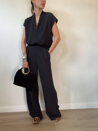 Pantalone a vita medio-alta elasticizzato sul punto vita posteriore con dettaglio di pince. In coordinato con la sua maglia diventa un completo smart, facile, comodo che conferisce stile e comodità allo stesso tempo.