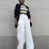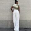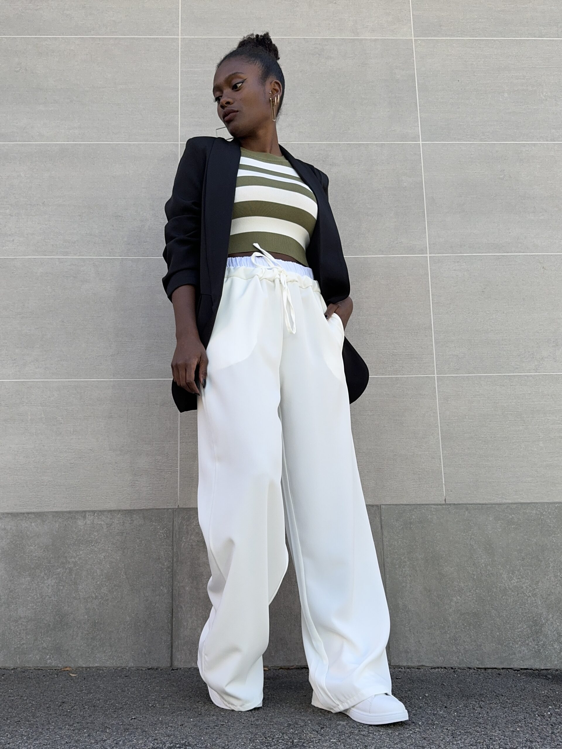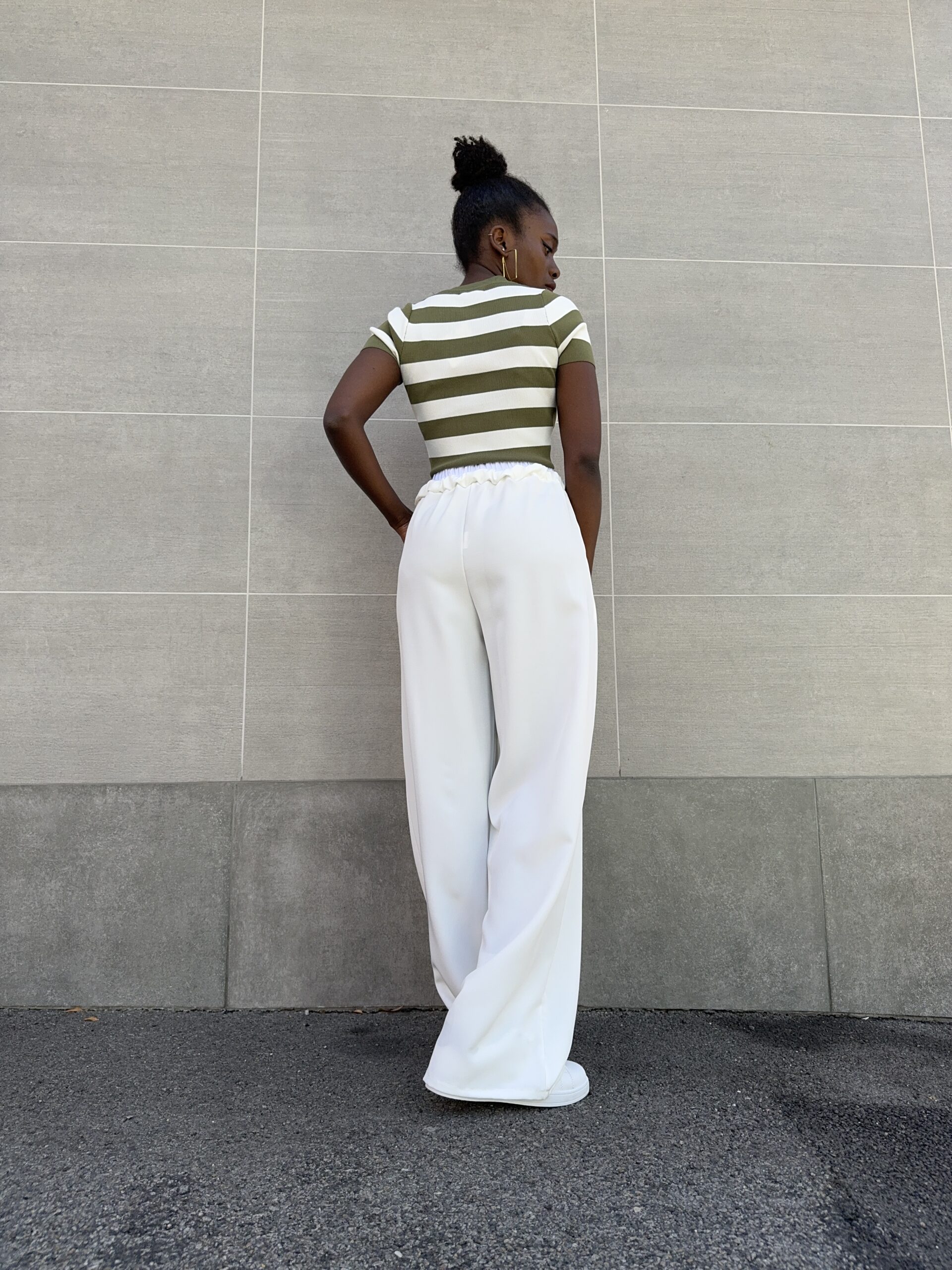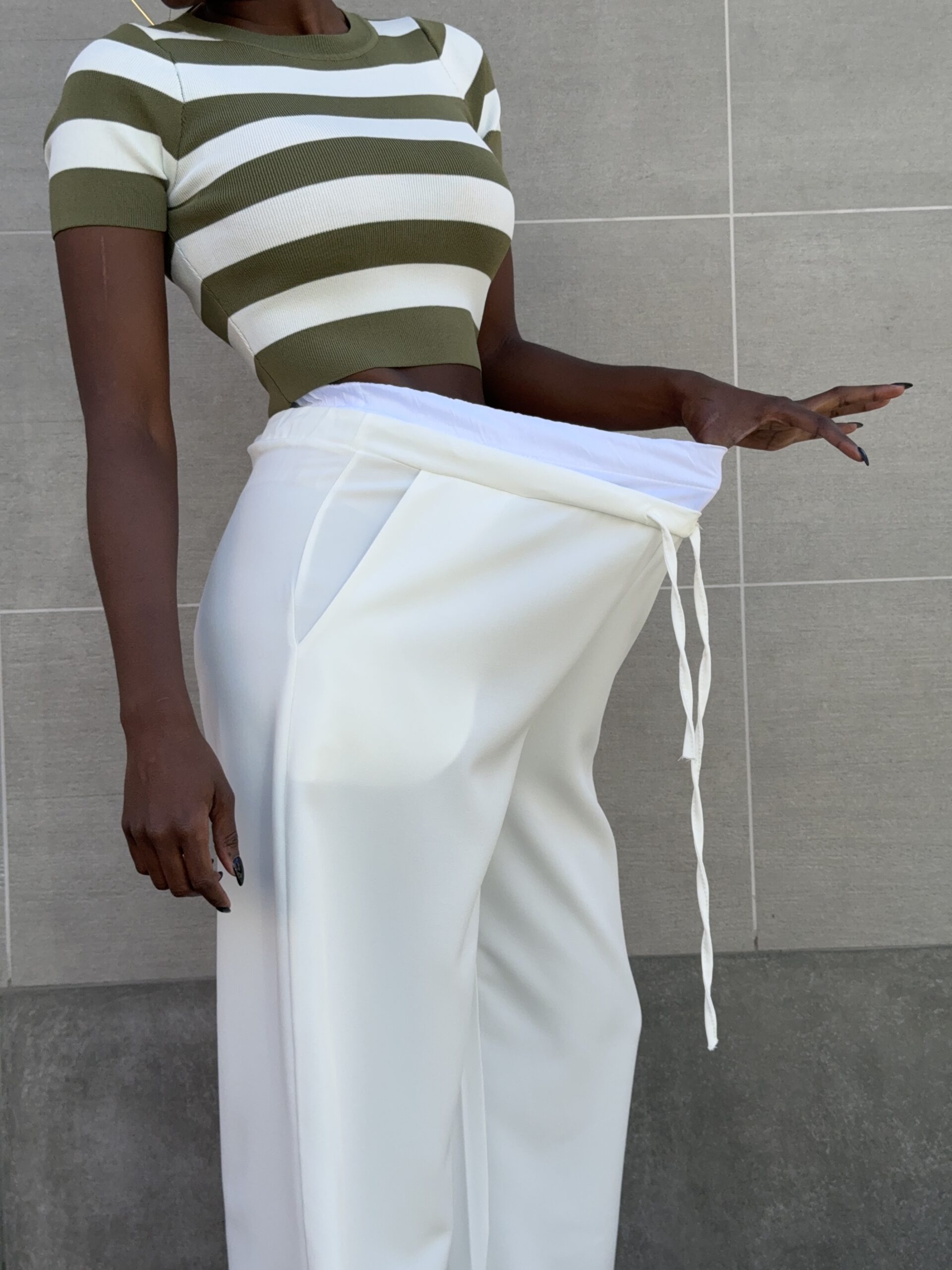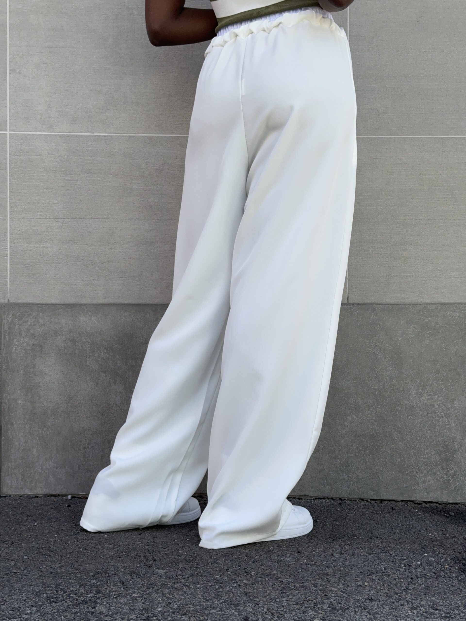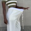 Pantalone elasticizzato con dettaglio di banda sul punto vita a palazzo.