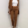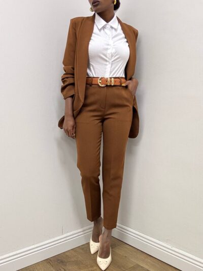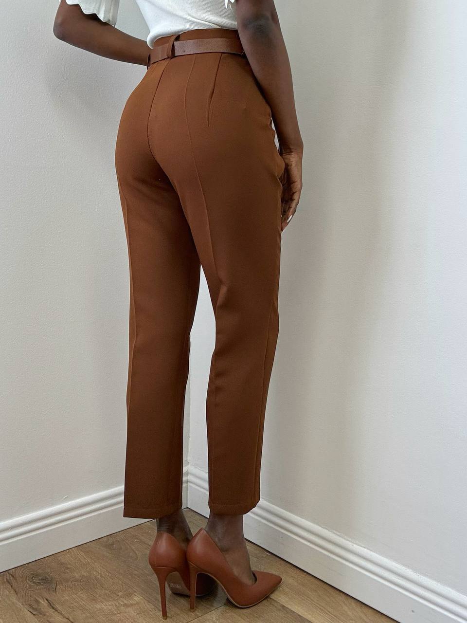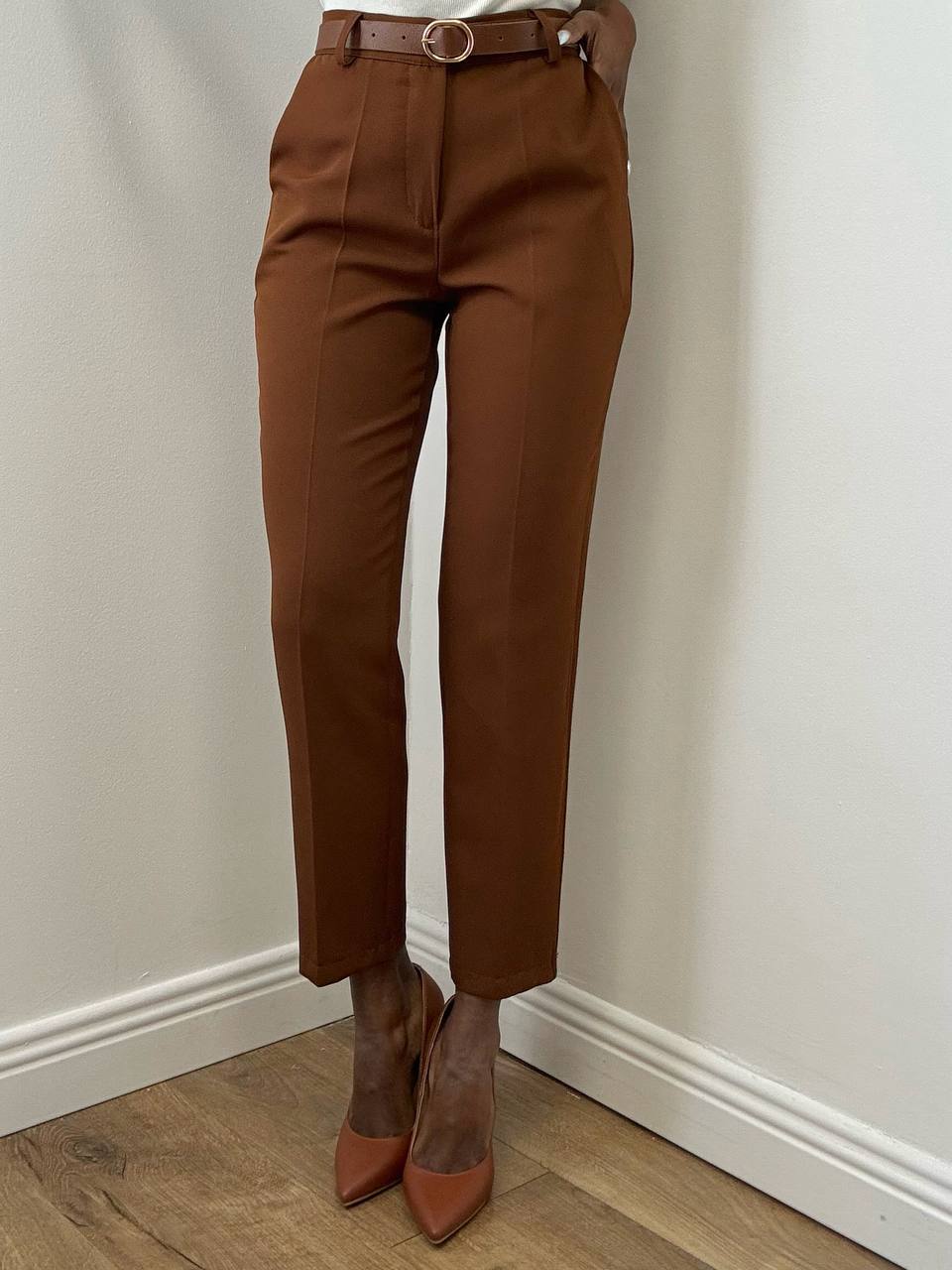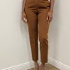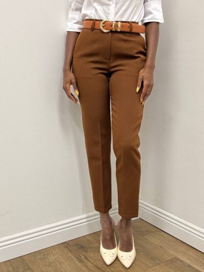 Pantalone a sigaretta tinta unita realizzato in tessuto morbido e leggermente elasticizzato per garantire comfort e vestibilita’. Il modello presenta una linea dritta e affusolata che segue naturalmente la gamba senza stringere, terminando con un orlo aderente alla caviglia. Chiusura frontale con zip nascosta e bottone in tinta, vita regolare e passanti per cintura. Un capo essenziale e versatile, perfetto sia per look casual che per outfit più eleganti.