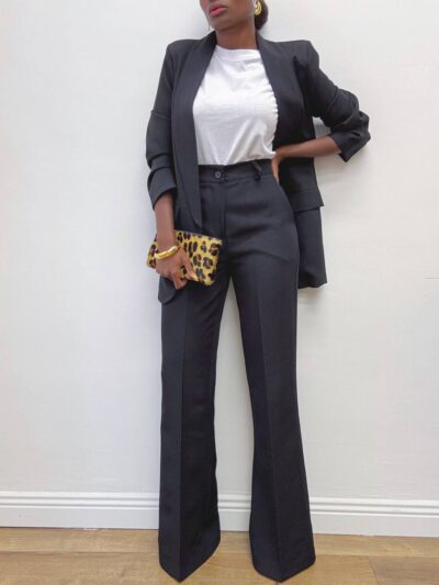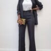 Il pantalone nasce per accompagnare ogni passo con naturale eleganza. La sua linea leggermente svasata, che parte dal ginocchio, slanciando la figura senza esagerare nelle proporzioni. Realizzato in un tessuto morbido ma deciso, garantisce una vestibilità confortevole e precisa, mentre la vita alta disegna con discrezione il punto vita, valorizzandolo.