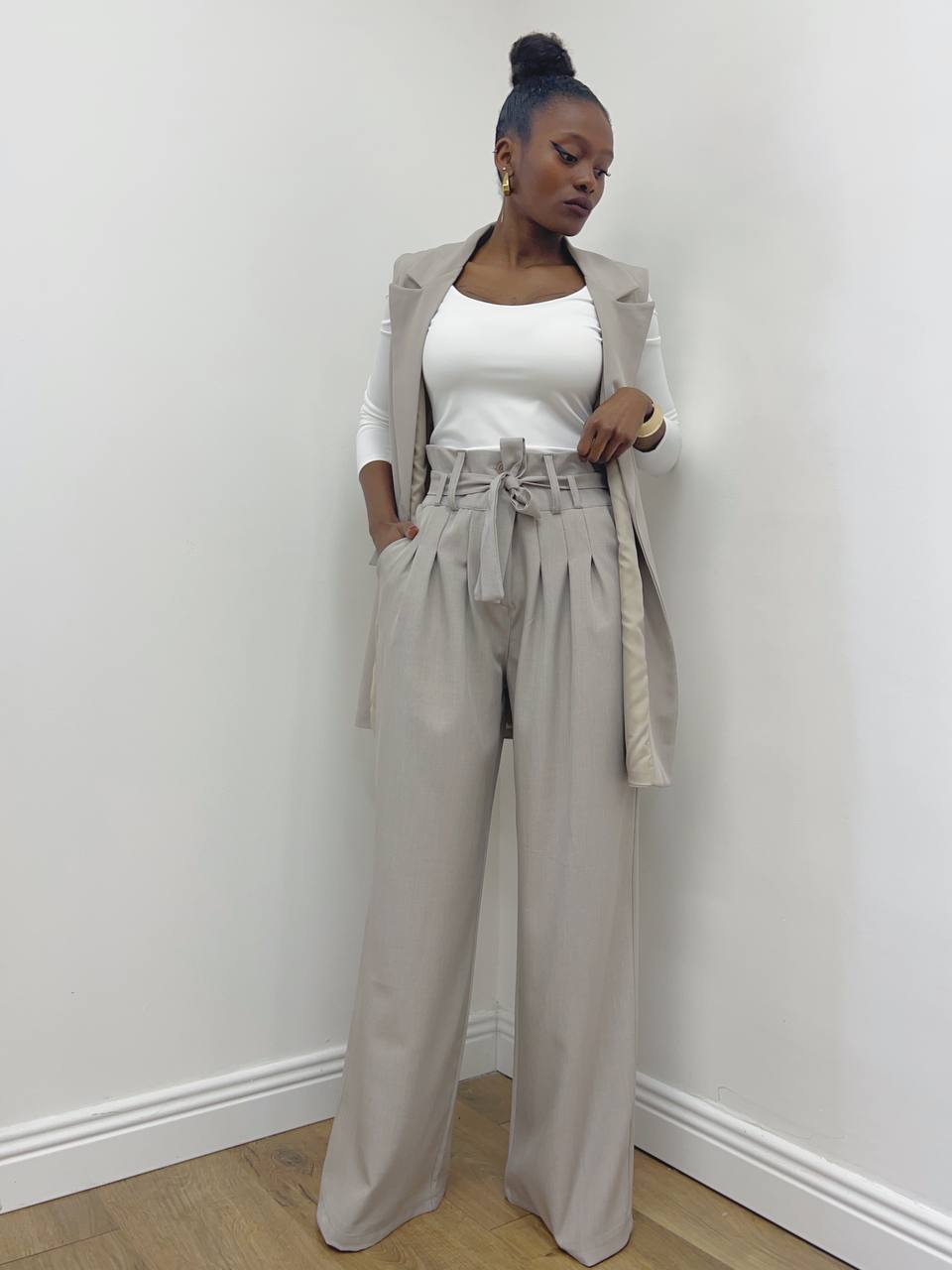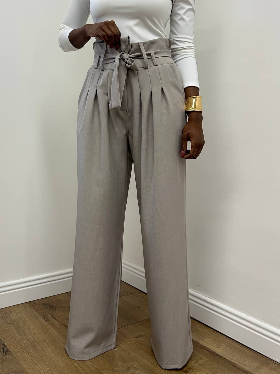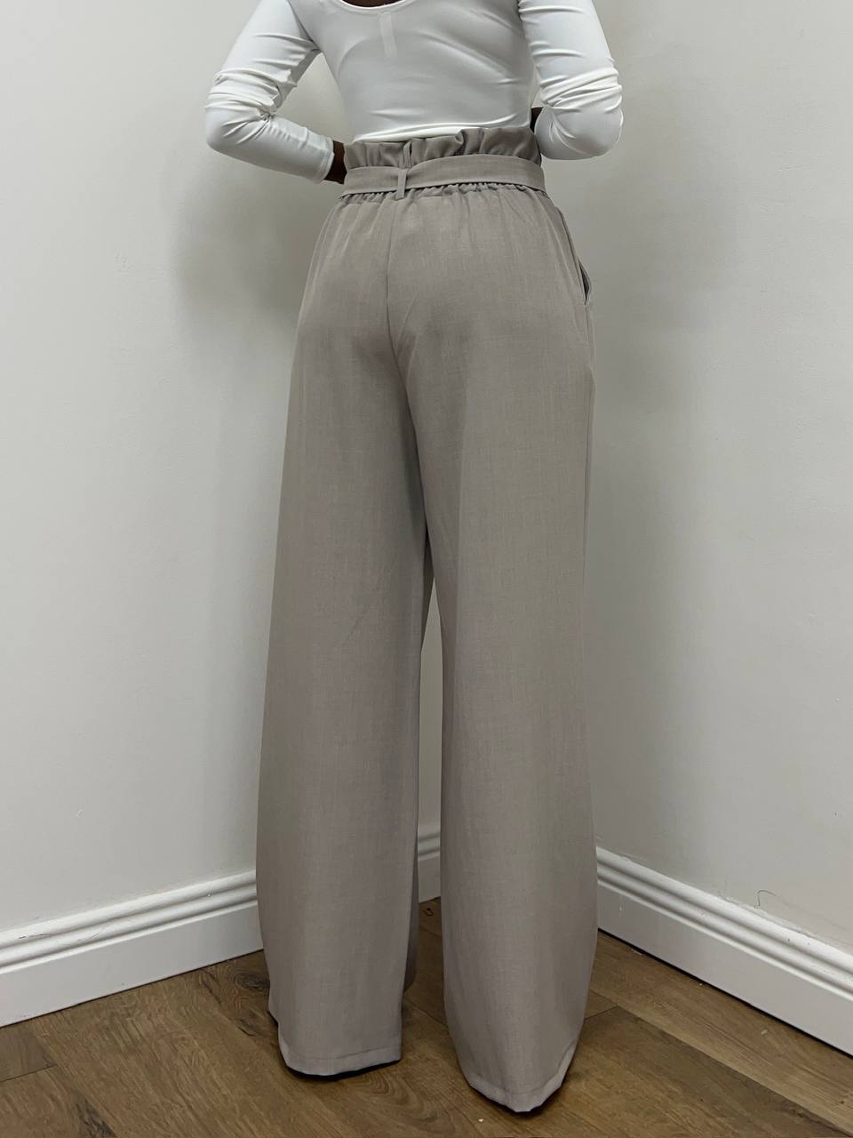 Pantalone elasticizzato a palazzo a tinta unita con dettaglio di cinturino in vita tono su tono.