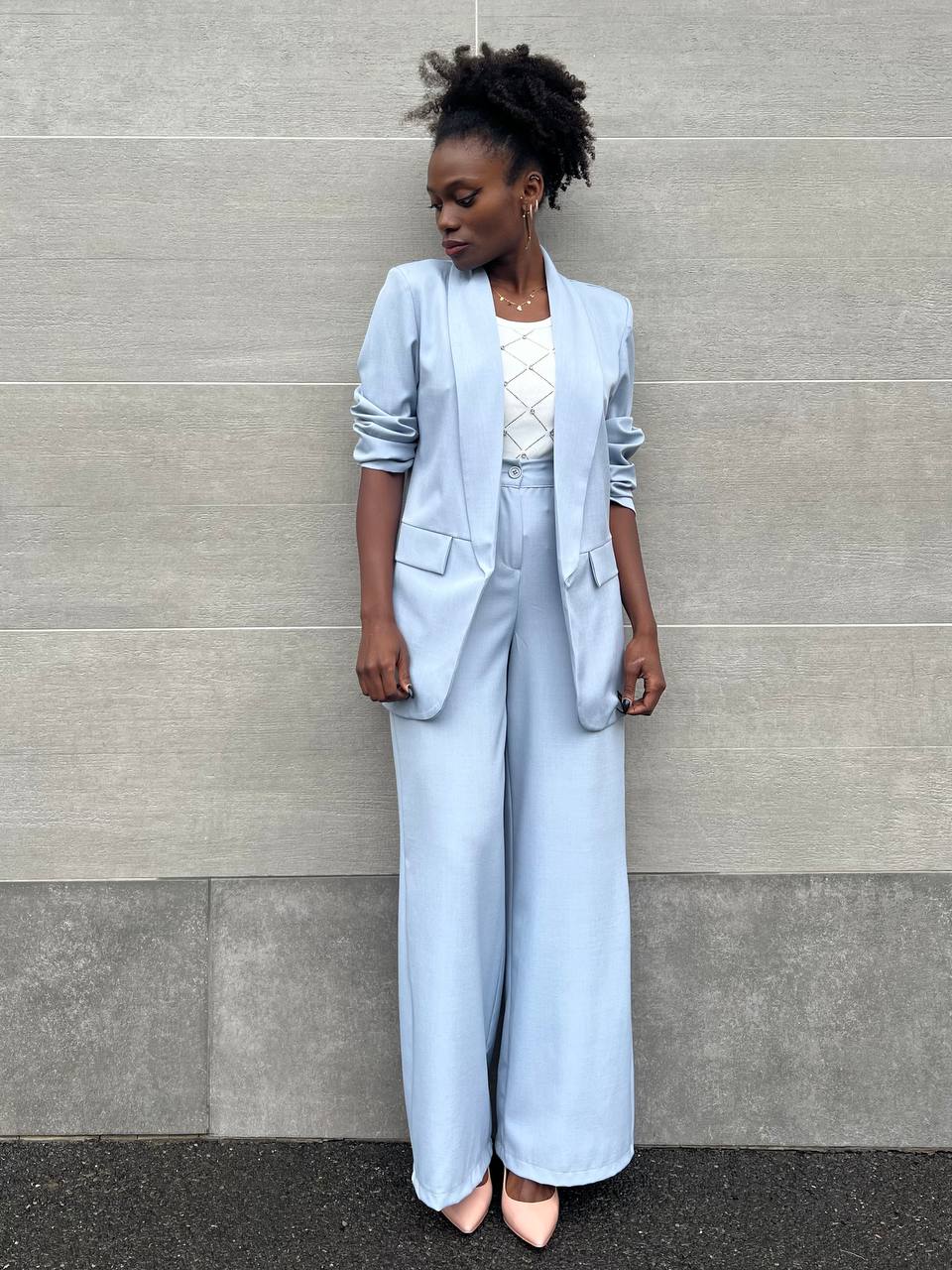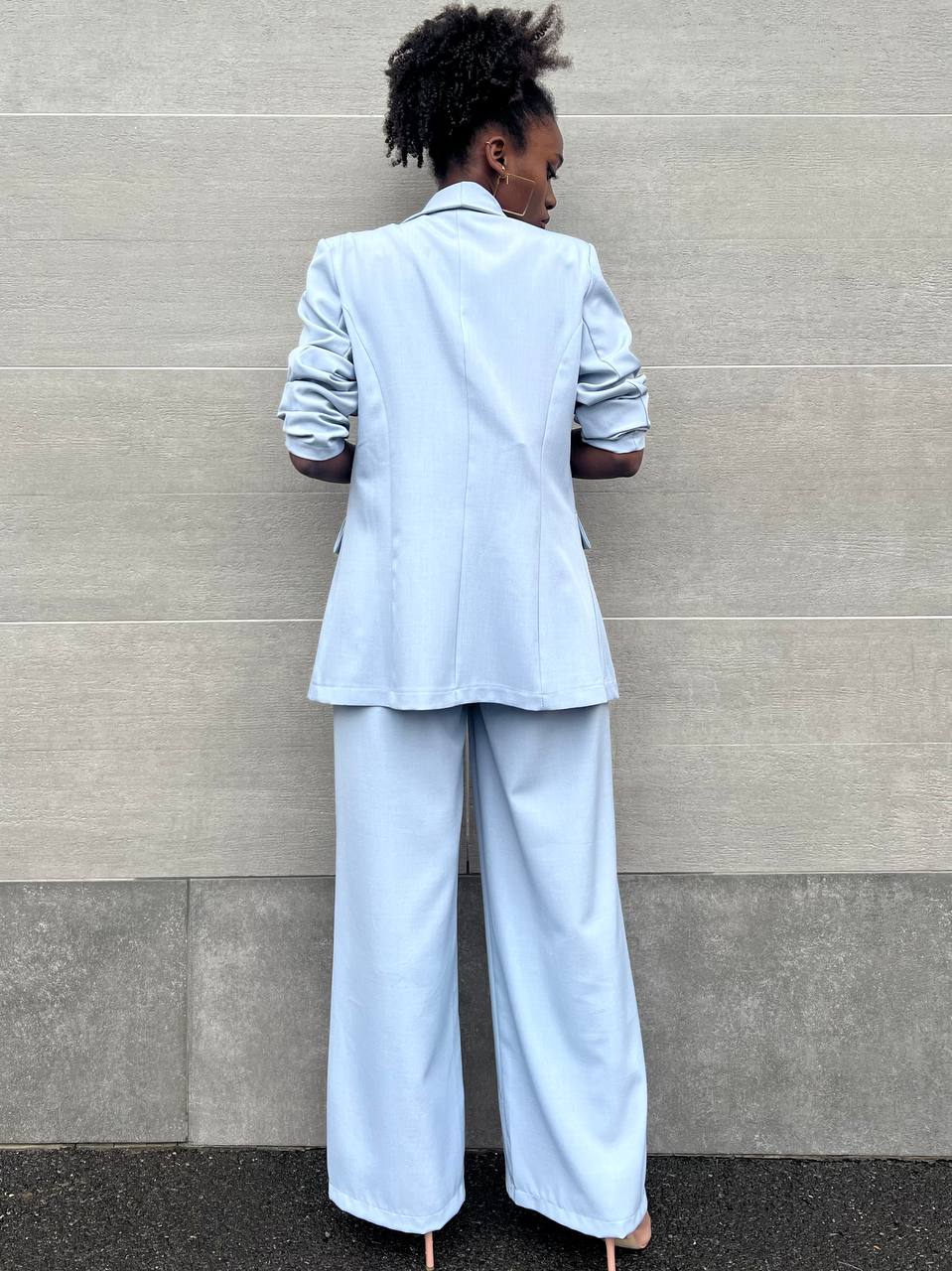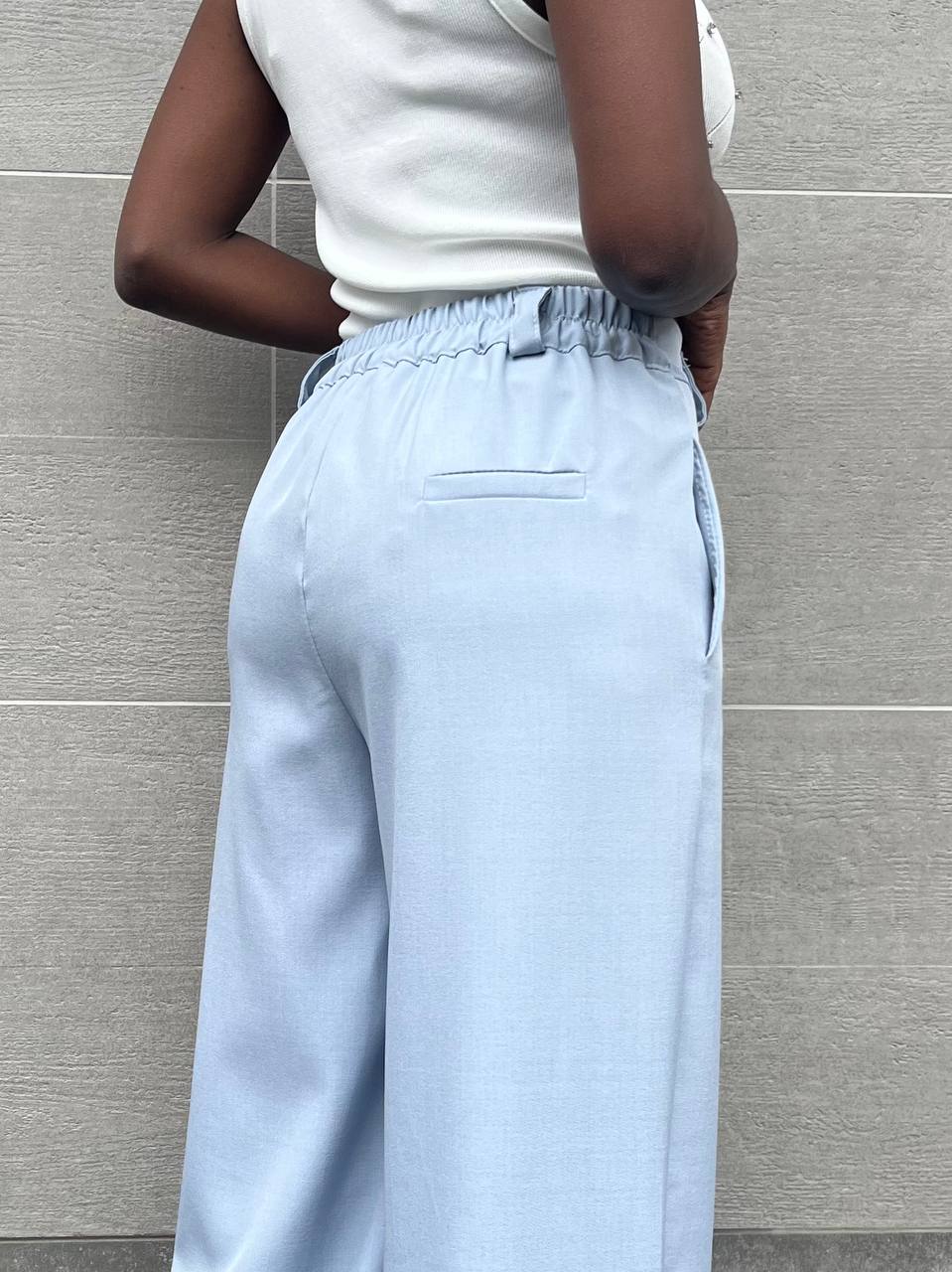 Pantalone elasticizzato in vita leggermente a palazzo a tinta unita. Chiusura con zip e chiusura.