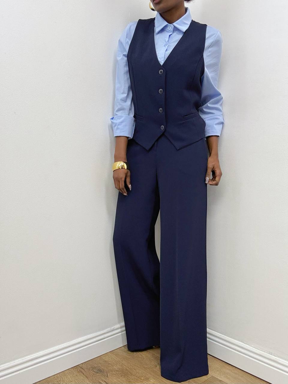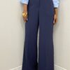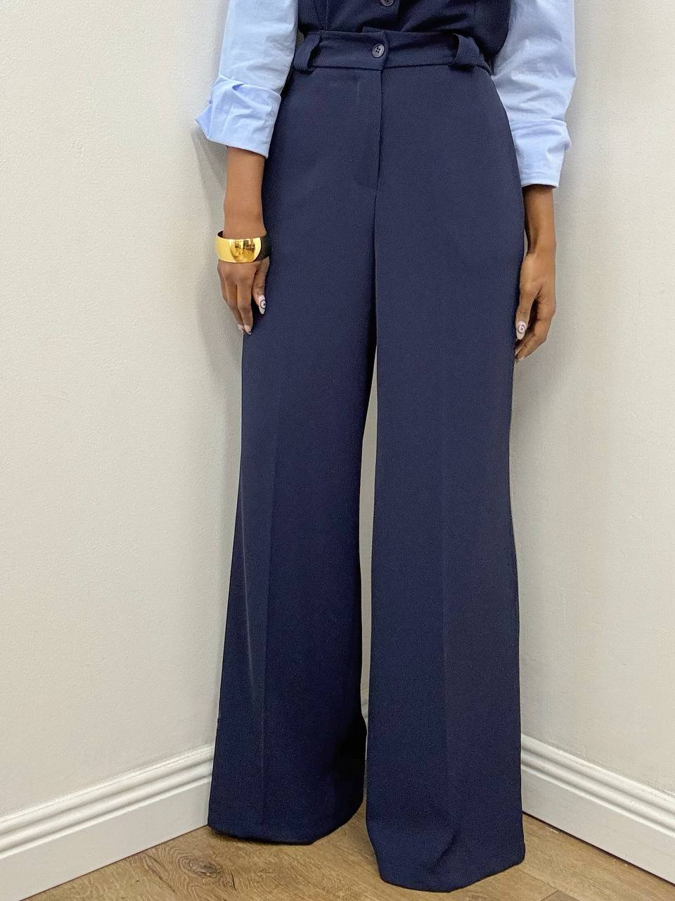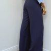 Pantalone a palazzo dalla silhouette ampia e fluida, pensato per unire eleganza e comfort. Il modello presenta una fascia elasticizzata sul retro della vita, che assicura una vestibilità confortevole e adattabile, mantenendo una linea pulita sul davanti.