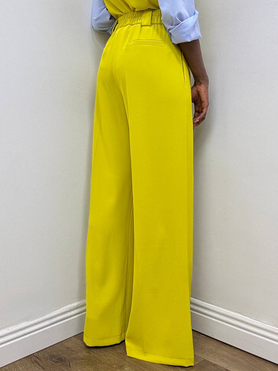 Pantalone a palazzo dalla silhouette ampia e fluida, pensato per unire eleganza e comfort. Il modello presenta una fascia elasticizzata sul retro della vita, che assicura una vestibilità confortevole e adattabile, mantenendo una linea pulita sul davanti.