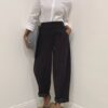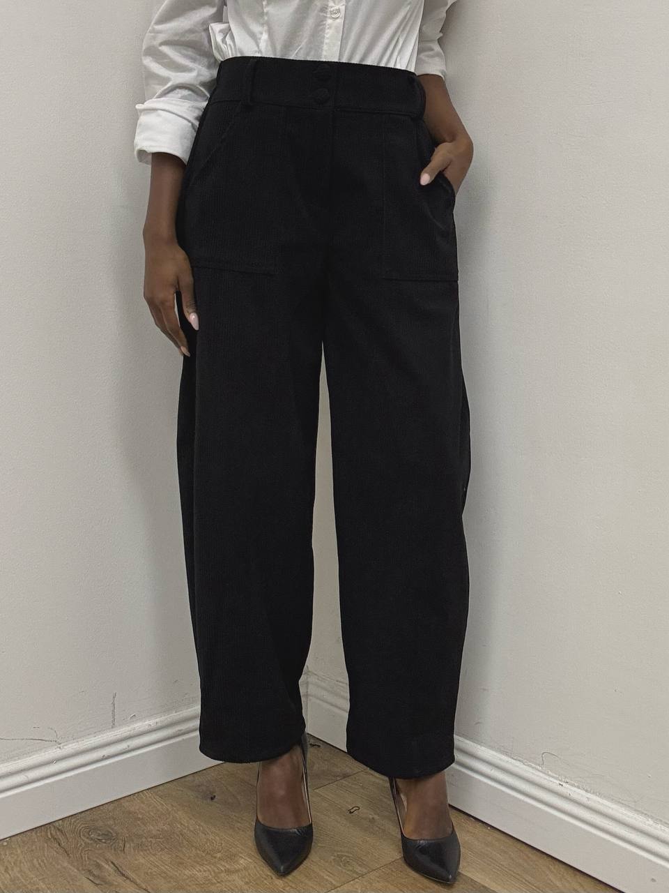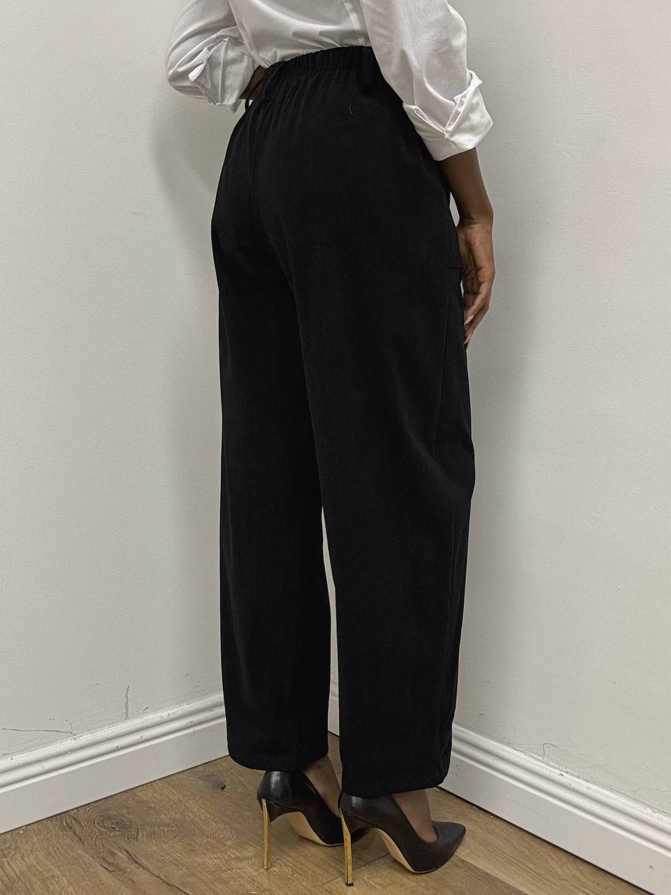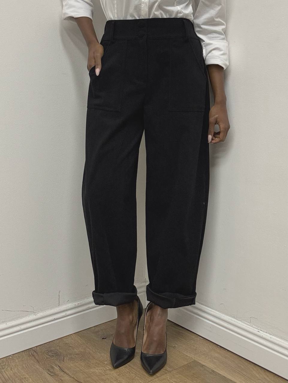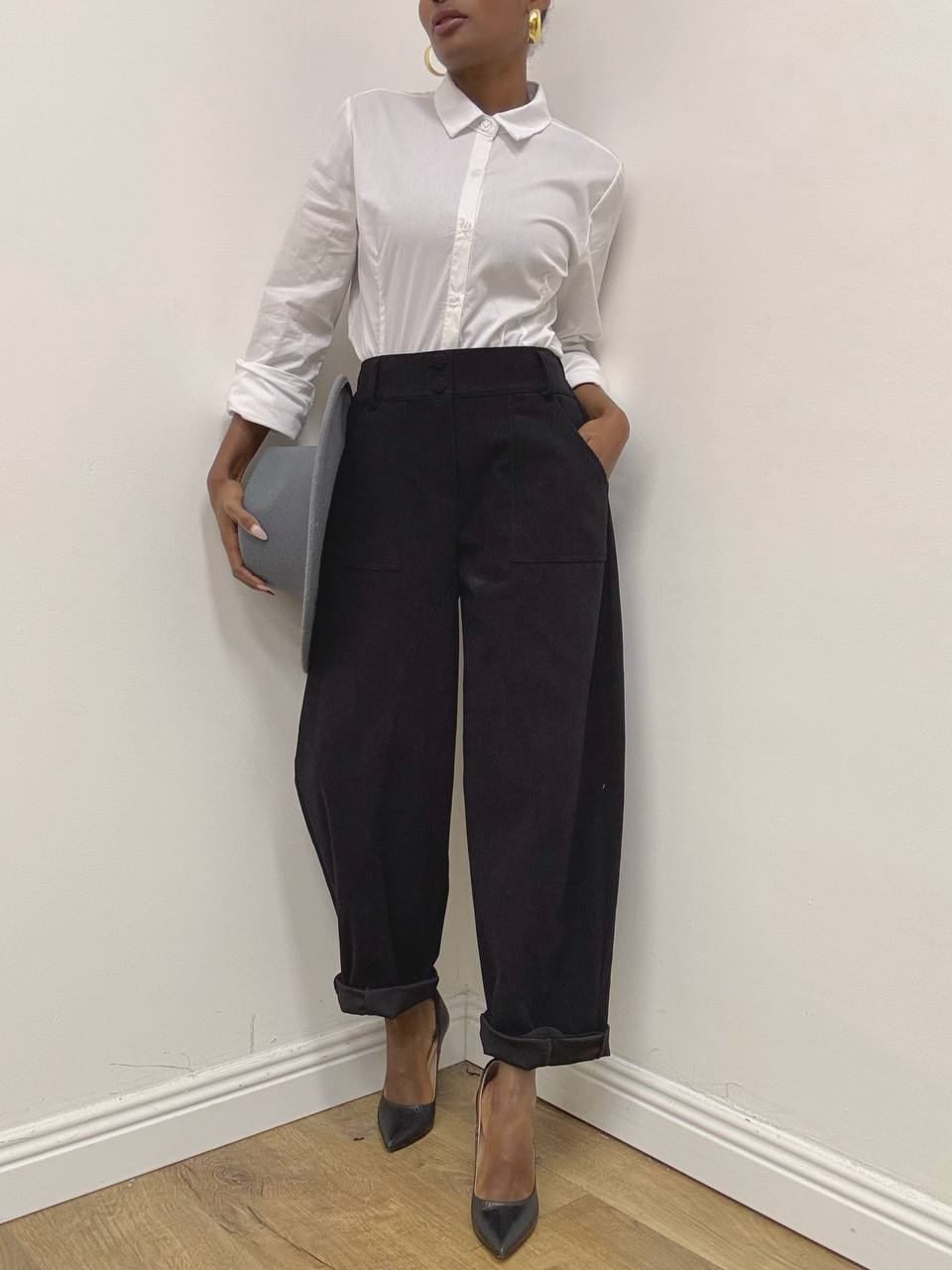 Questo pantalone unisce stile e comfort in un unico capo. La vita alta elasticizzata garantisce una vestibilità perfetta e aderente, valorizzando la silhouette senza rinunciare al comfort. La linea barrel delle gambe conferisce un look elegante e versatile, ideale sia per outfit formali che casual. Un capo essenziale, facile da abbinare e perfetto per tutte le occasioni.