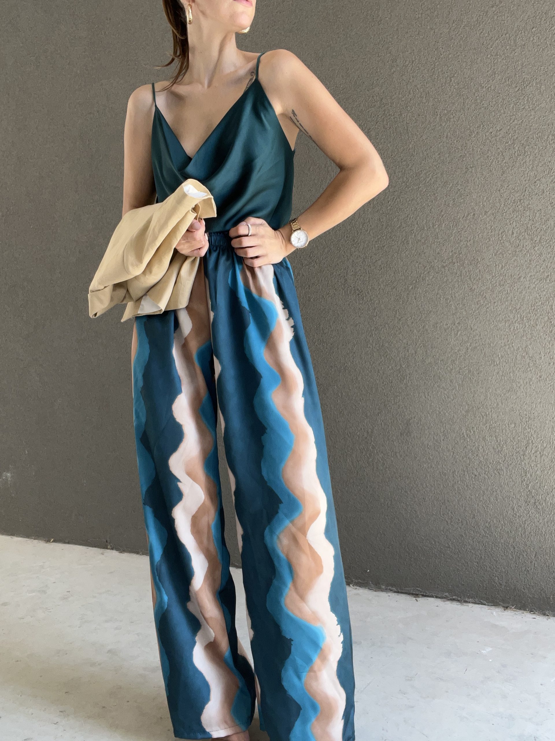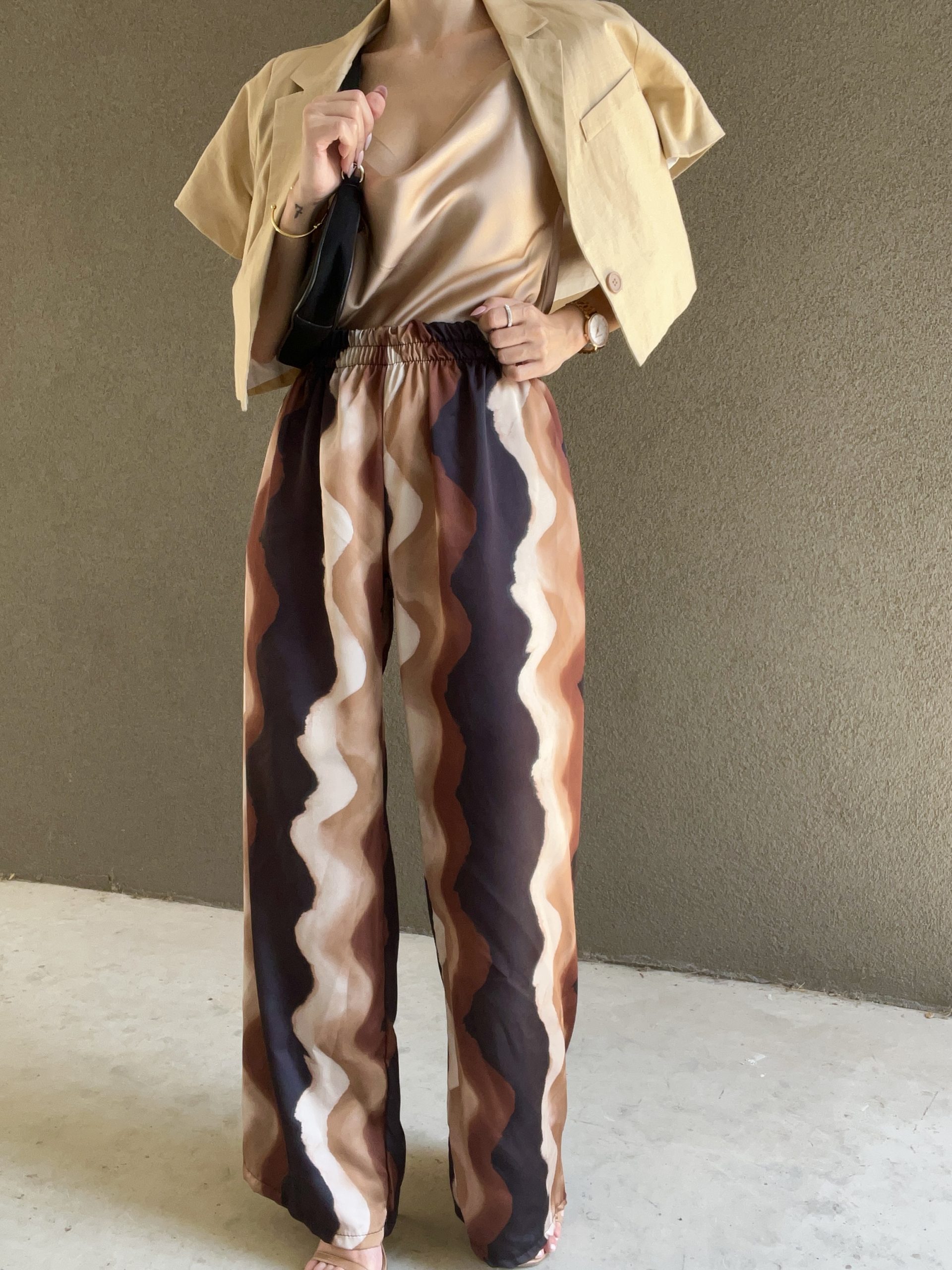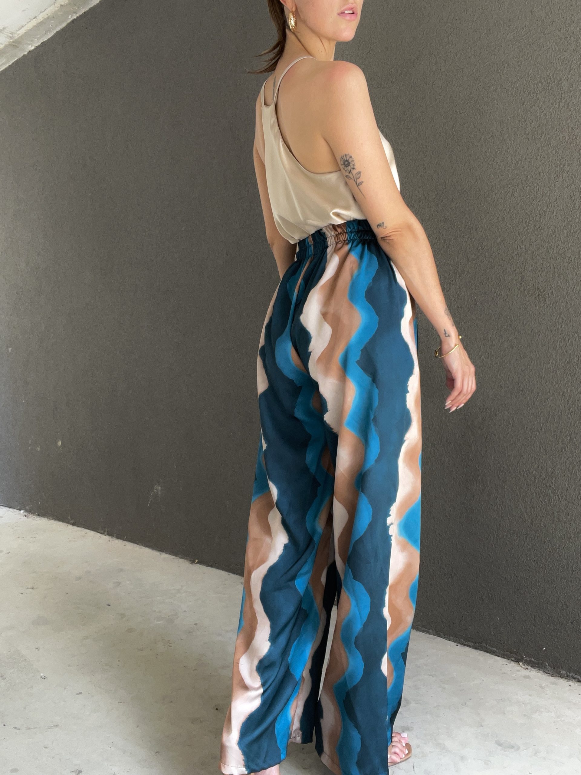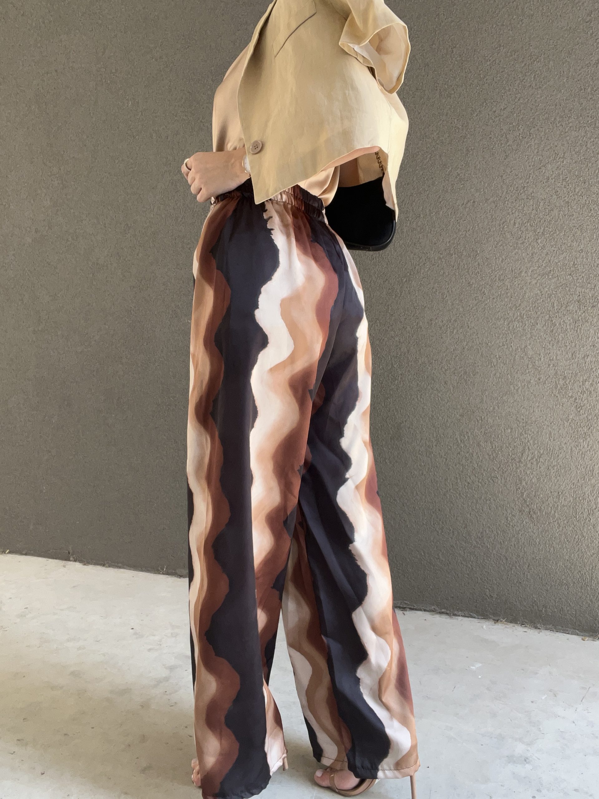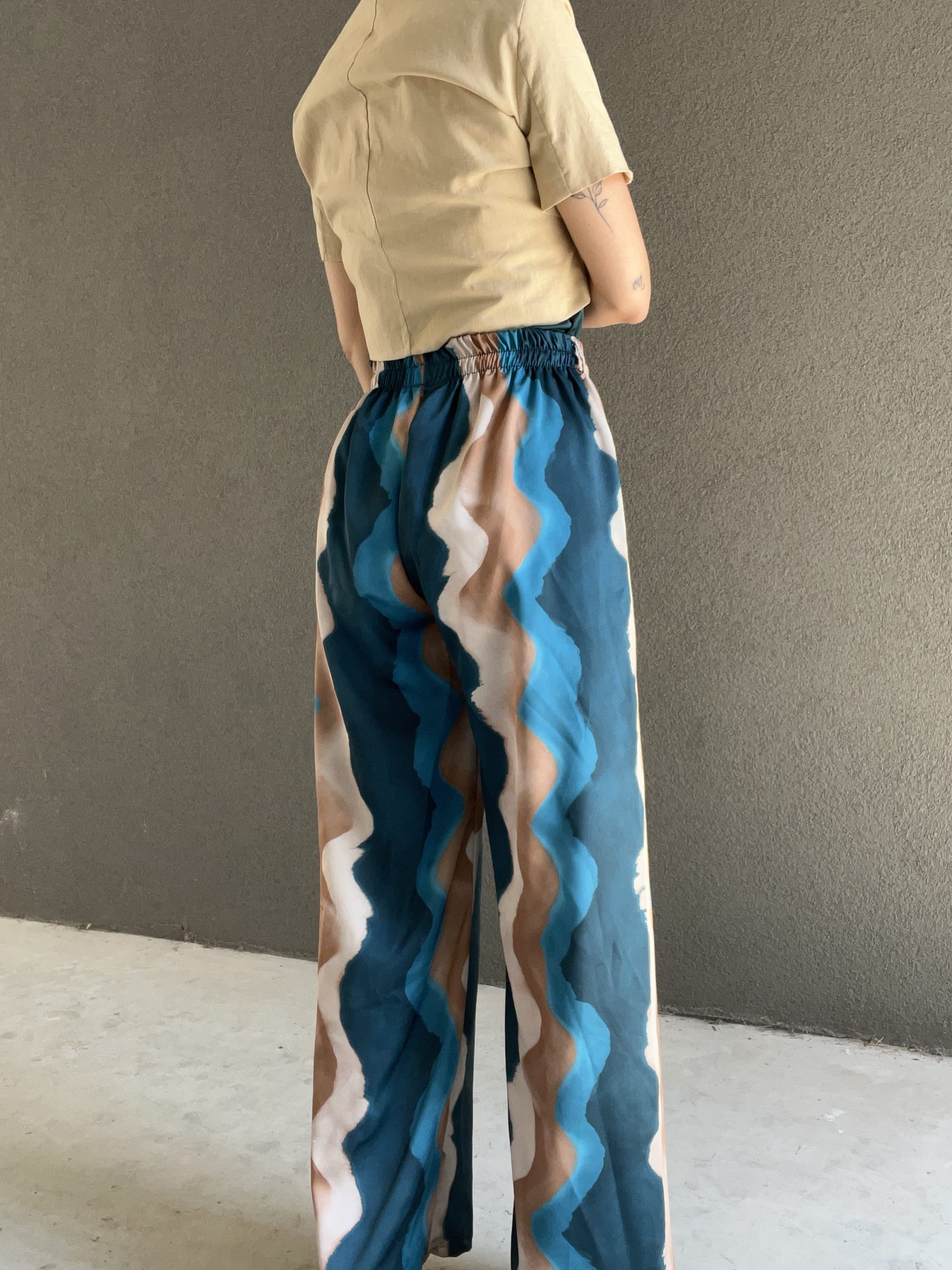 Pantalone a vita alta con elastico . Taglia unica: veste da una taglia 38 a una taglia 44. Tessuto scivolato e morbido.