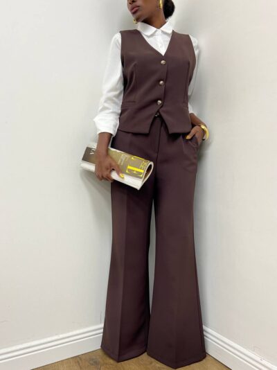 Elegante e versatile, questo pantalone palazzo unisce comfort e stile in un design moderno. Realizzato in tessuto fluido e leggero, presenta una gamba ampia e dritta che cade morbida lungo la silhouette, garantendo un fit arioso e femminile.