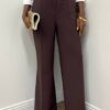 Il cinturino integrato in vita aggiunge struttura al modello, mentre il pannello elasticizzato sul retro assicura una vestibilità comoda e adattabile, valorizzando la linea senza costringere. Le tasche frontali oblique donano praticità e un tocco casual, perfetto per l’uso quotidiano o per un look da ufficio sofisticato. Ideale da abbinare a camicie morbide, top aderenti o blazer sartoriali, questo pantalone è un must-have per ogni guardaroba.