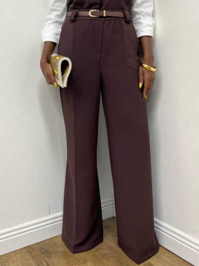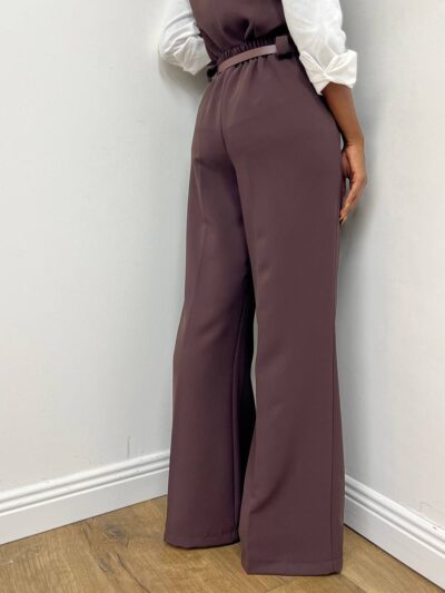 Pantalone palazzo con elastico posteriore, cinturino integrato e tasche frontali