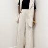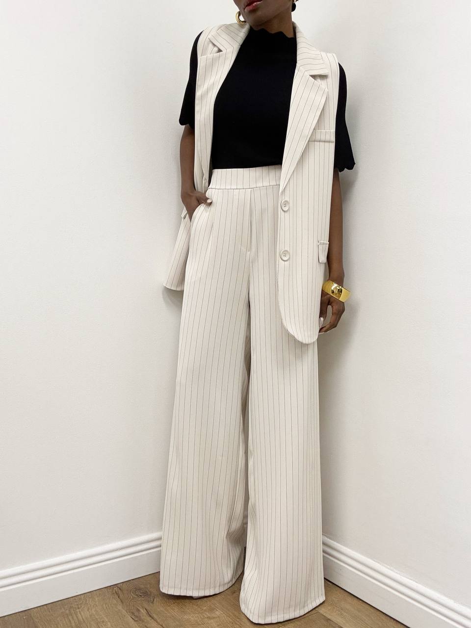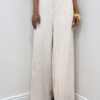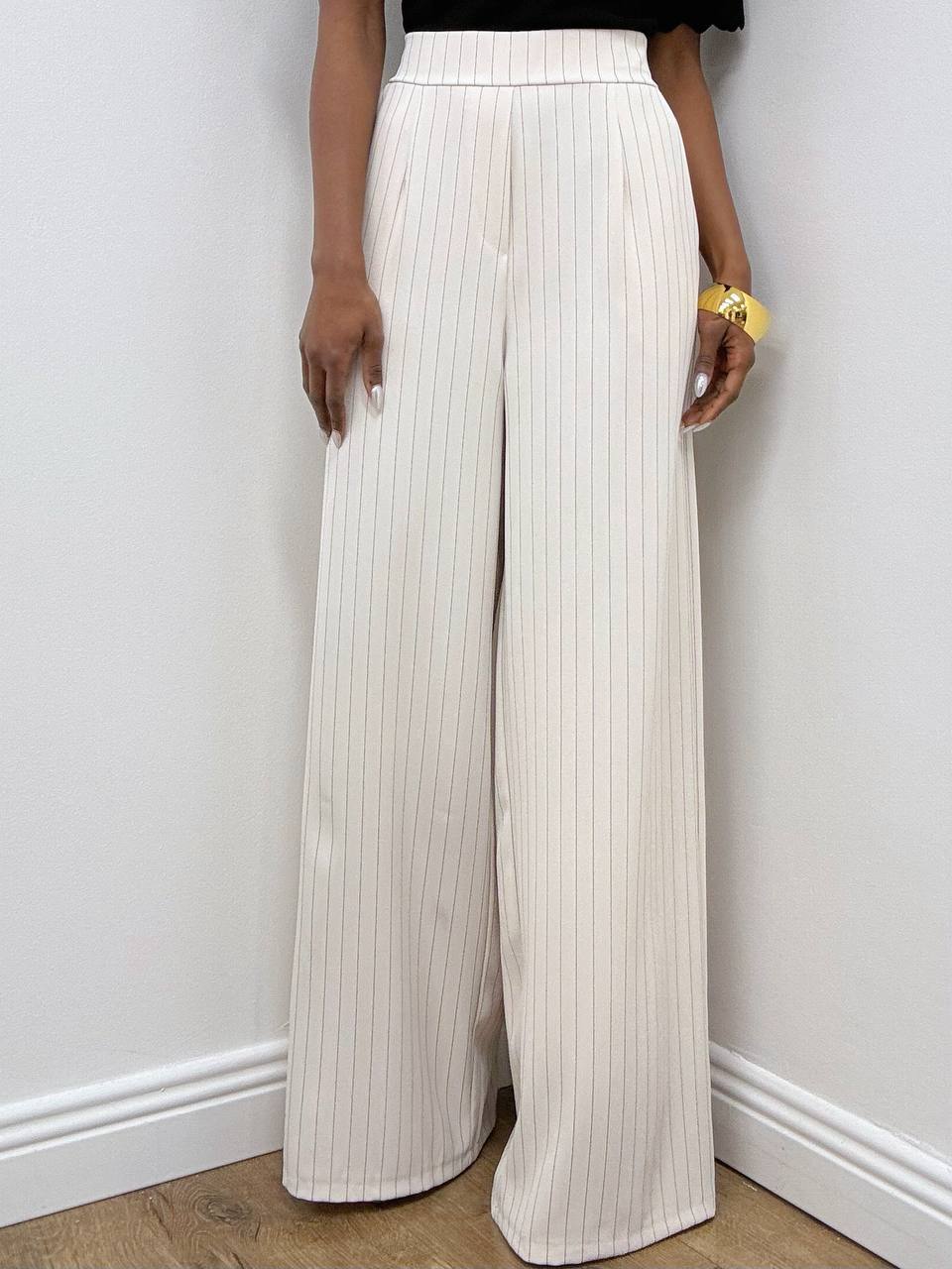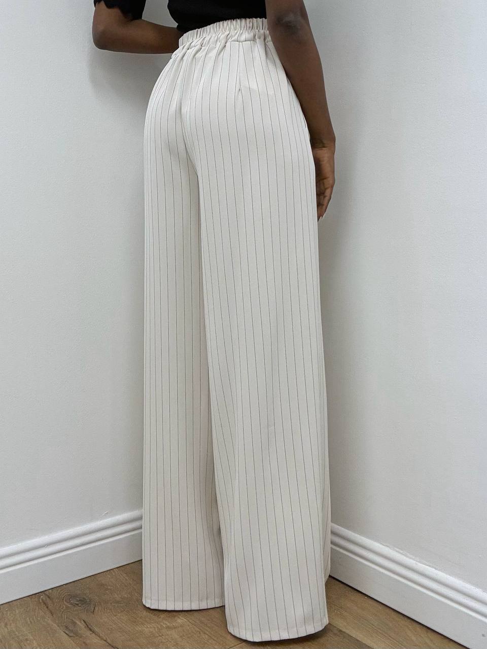 Pantalone gessato dal taglio raffinato, caratterizzato da sottili righe verticali che valorizzano e slanciano la figura. Il modello presenta una fascia elasticizzata nella parte posteriore della vita, pensata per offrire massimo comfort e una vestibilità versatile. Le due taschine laterali aggiungono praticità al design, mentre il dettaglio delle pince dona struttura e un’eleganza sartoriale al capo. Ideale per completare look formali o per interpretazioni moderne dallo stile ricercato.
