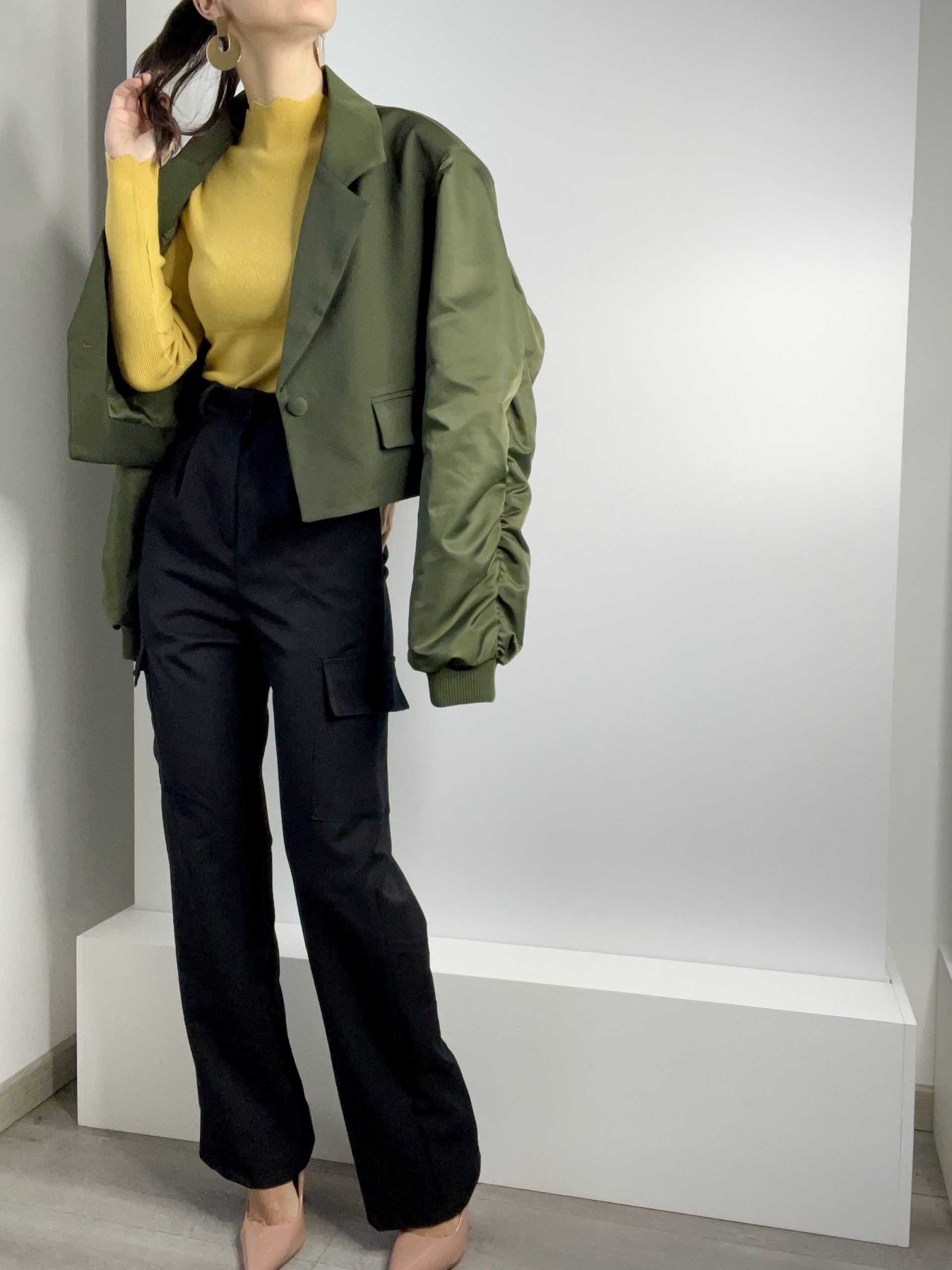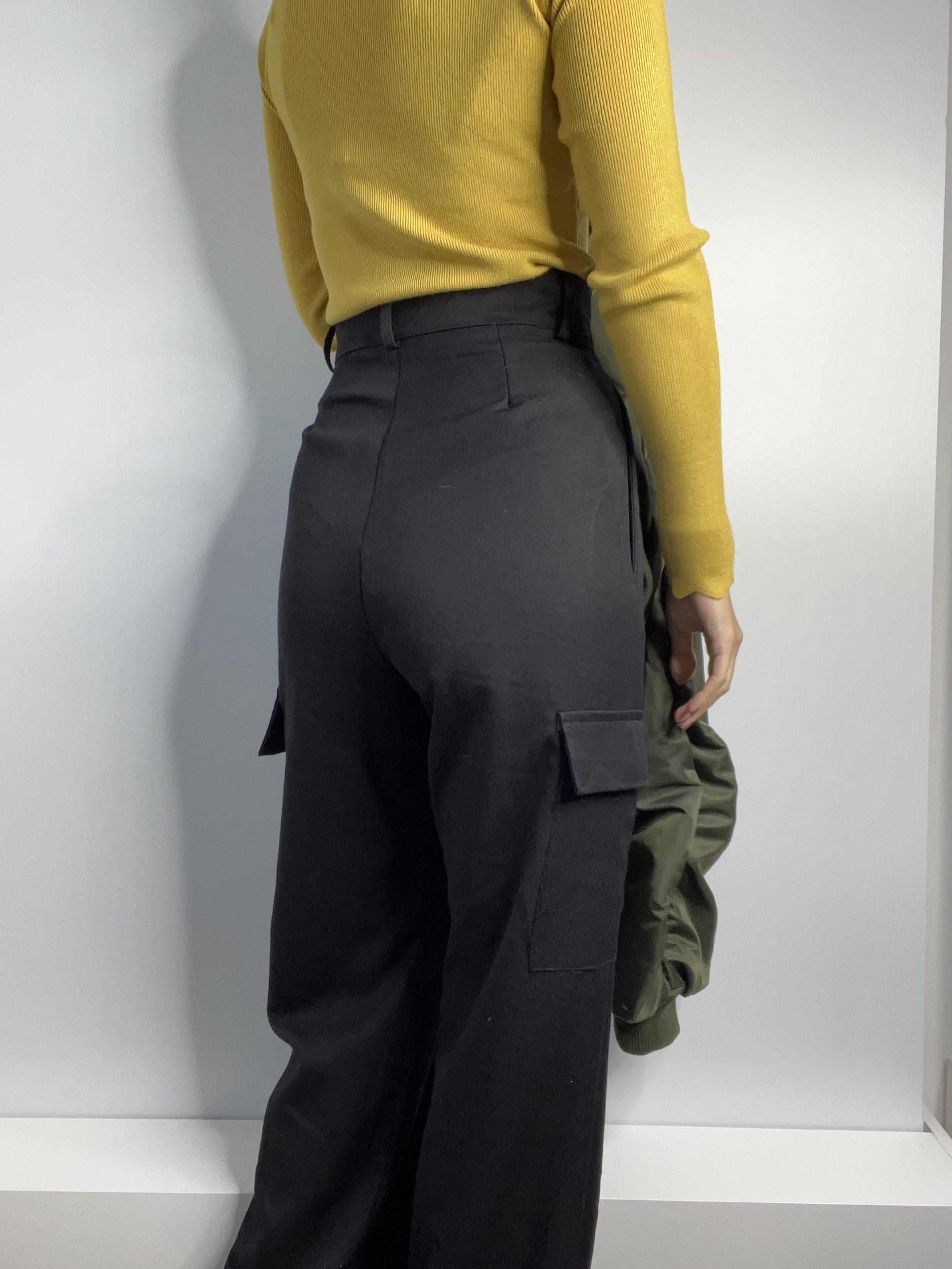 Pantalone a palazzo con due tasche sulla lunghezza della gamba.