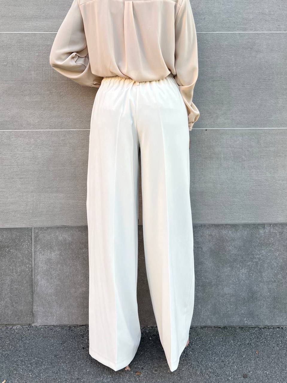 Pantalone elasticizzato a tinta unita a palazzo con taschine laterali.