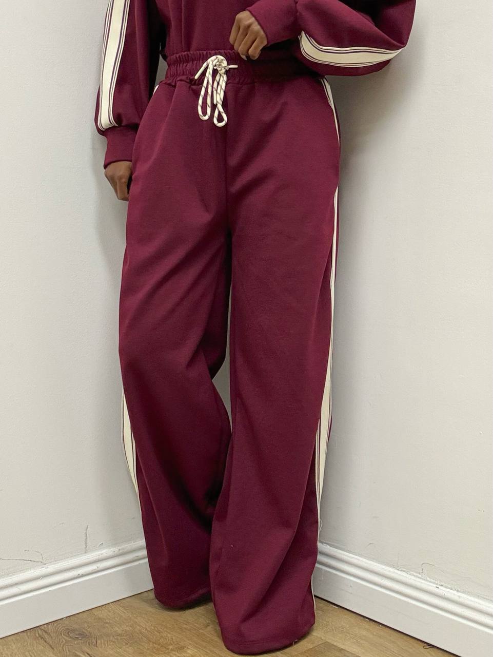 Pantalone in misto viscosa dal taglio dritto e fit comodo. Realizzati con bande laterali a contrasto color crema, aggiungono un tocco retrò e dinamico al look casual.