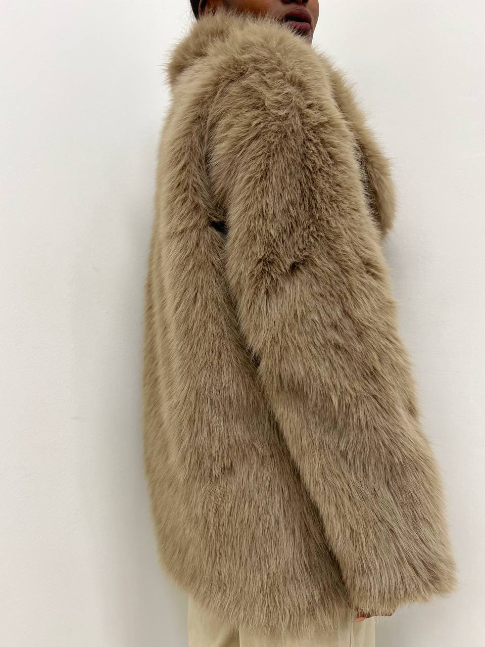 Elegante e raffinata, questa pelliccia in 100% poliestere di ottima qualità unisce stile e comfort in un unico capo.