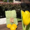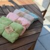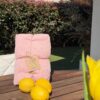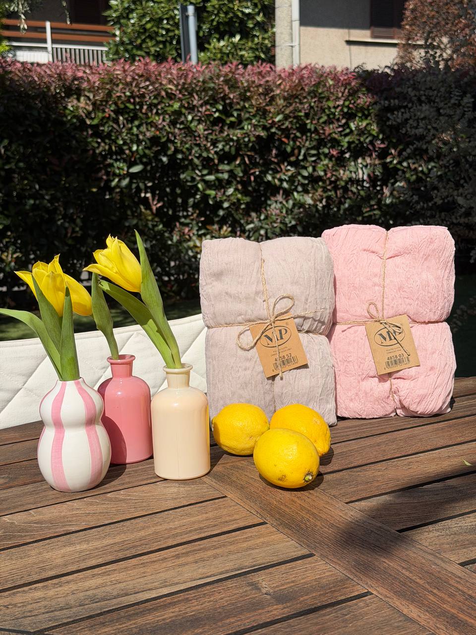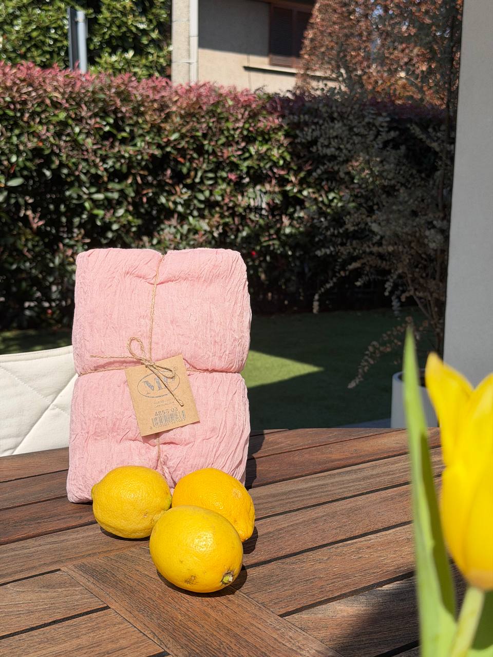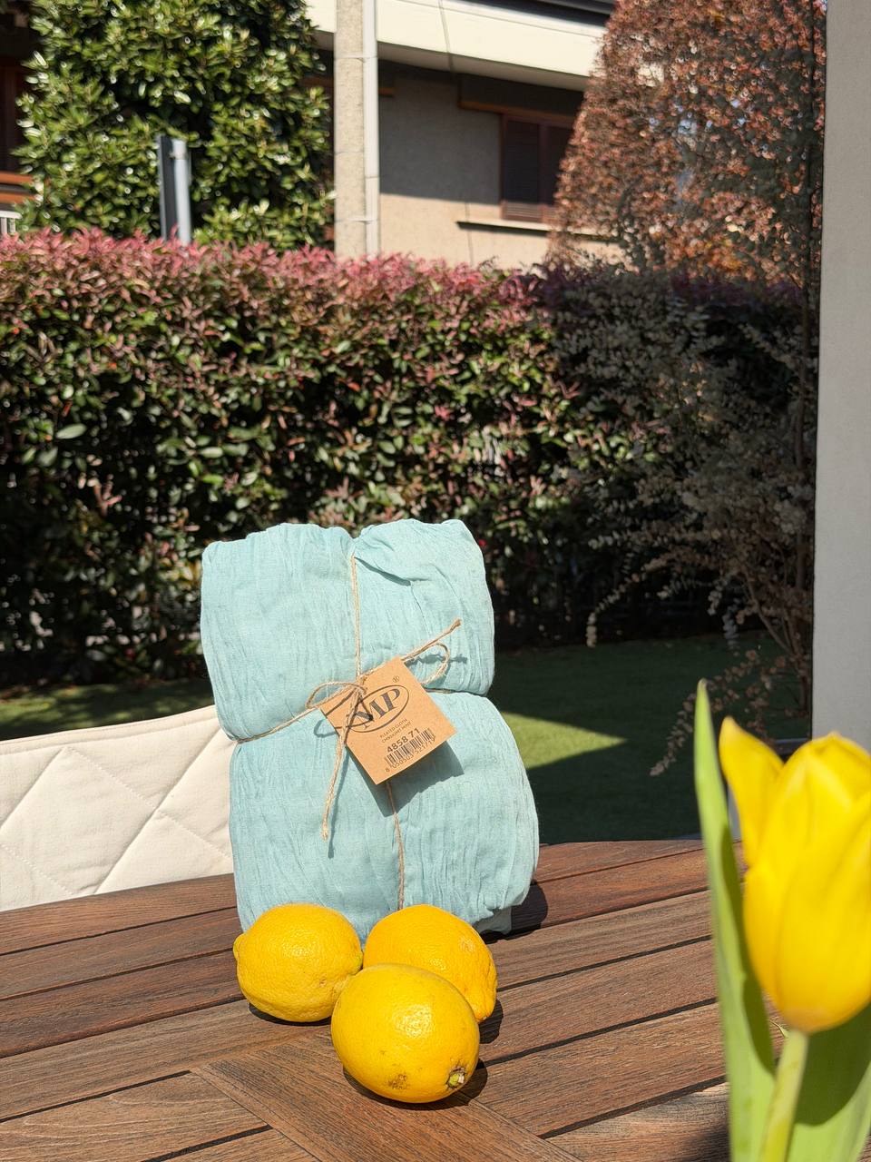 Cura e manutenzione: lavare a mano o in lavatrice a temperatura moderata, preferibilmente con ciclo delicato e senza candeggio. Asciugare all’aria e stirare a temperatura moderata se necessario. Evita fonti di calore eccessive per mantenere intatta la texture.