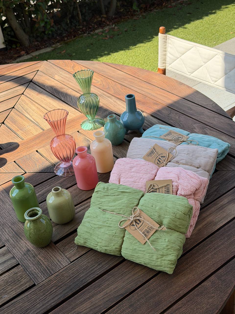 Questi runner in tessuto si distinguono per la sua leggerezza, la piegatura fluida e la facilità di cura. Puoi usarlo come contenitore di stile per cordoni decorativi, oppure come box o supporto neutro per creare contrasti tra colori e textures. Le varianti di colore si abbinano perfettamente a fiori color pastello, piante verdi e arrangiamenti naturali.