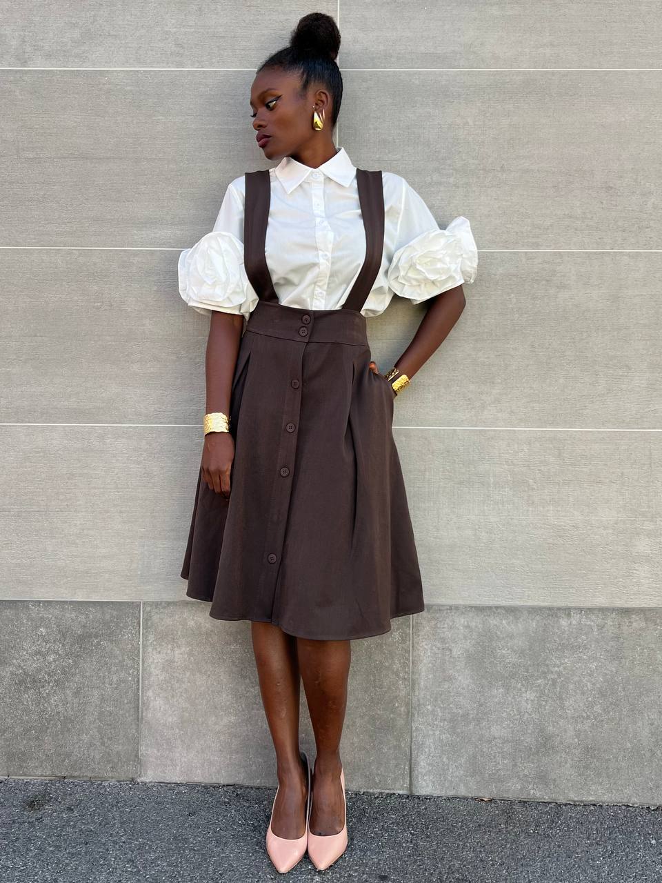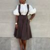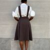 Salopette a tinta unita con dettaglio di bottoni centrali con dettaglio di pince sulla gonna.