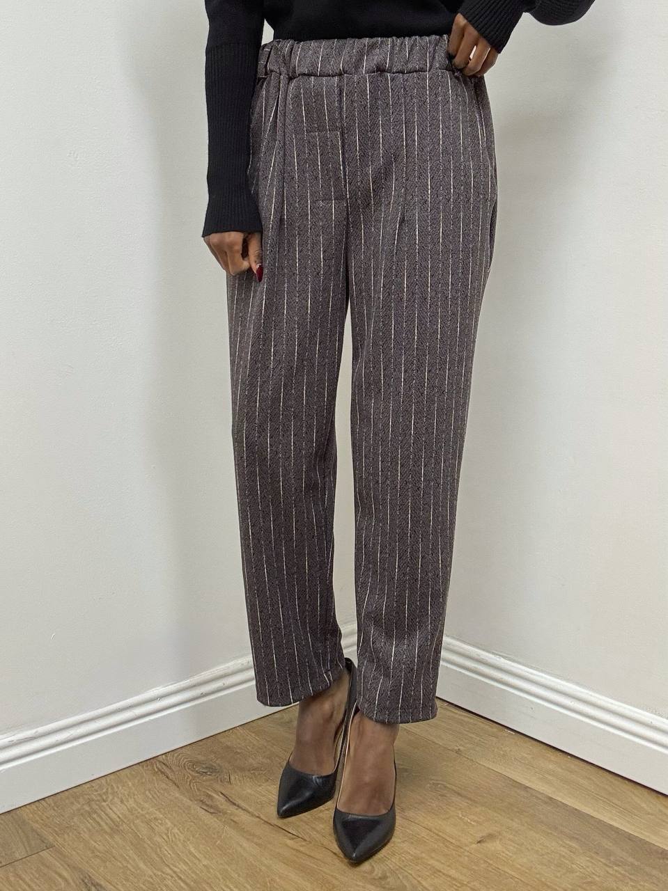 Il pantalone, dal taglio carrot, offre una silhouette attuale e confortevole. L’elastico posteriore garantisce una vestibilità ottimale, mentre il cinturino incorporato sul punto vita definisce la forma con discrezione. Le taschine laterali aggiungono praticità e funzionalità, completando un completo versatile, ideale per look raffinati da giorno o da sera, perfetto per chi cerca stile e comfort in un’unica soluzione. Pancino compatibile.