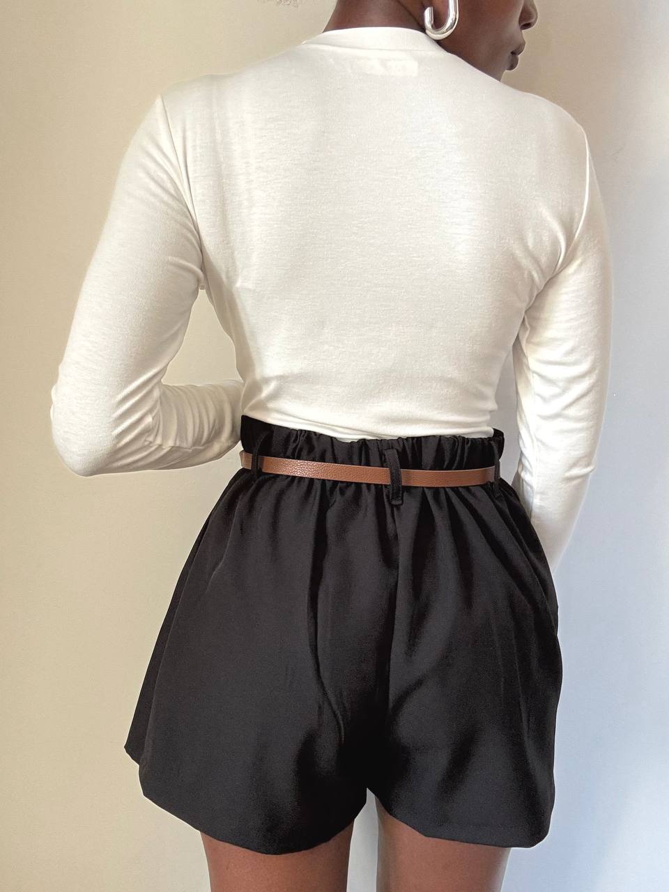 Shorts elasticizzati a tinta unita con cinturino sul punto vita con dettaglio di pince.