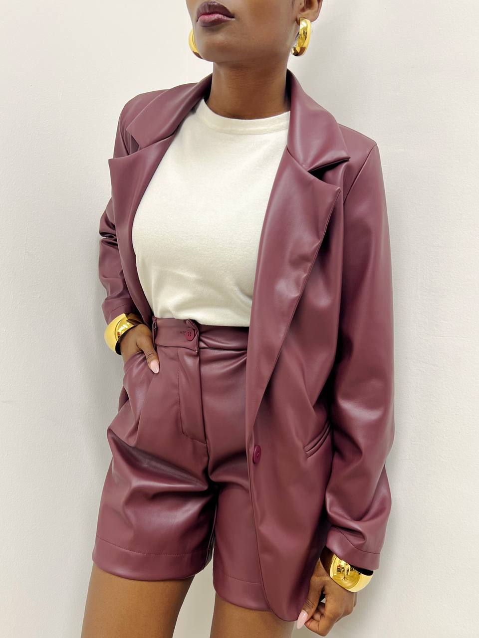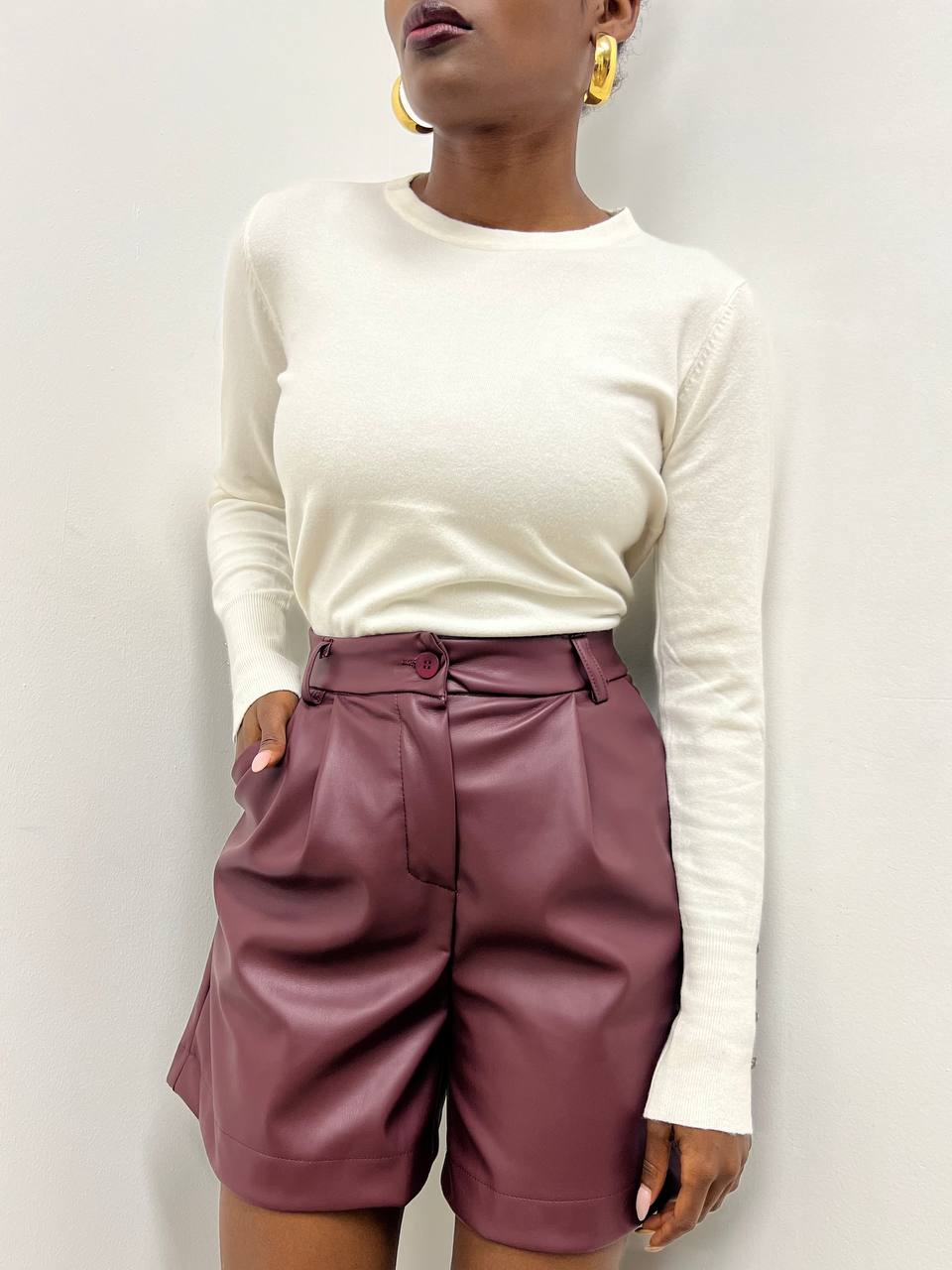 Dal taglio asciutto e confortevole, questi shorts si prestano a numerosi abbinamenti: da top morbidi e camicie leggere a blazer strutturati, per un outfit sofisticato e grintoso. La texture dell’ecopelle dona un tocco di carattere e modernità, rendendo il capo versatile e di tendenza.
