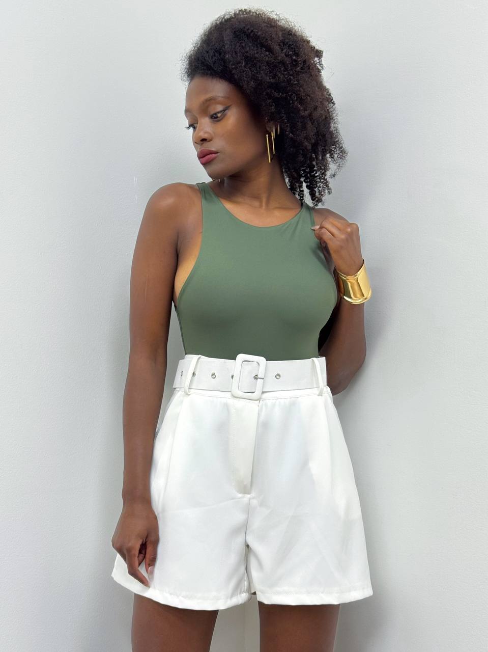 Shorts con cintura con dettaglio di pince sulla parte centrale. Dettaglio di taschine laterali.