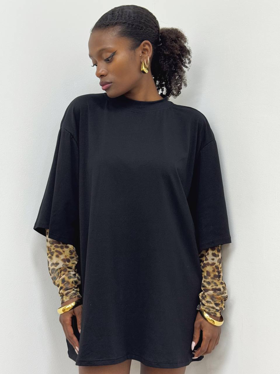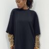 T-shirt a girocollo con dettaglio di maniche leopardate con guanto. Elasticizzate.