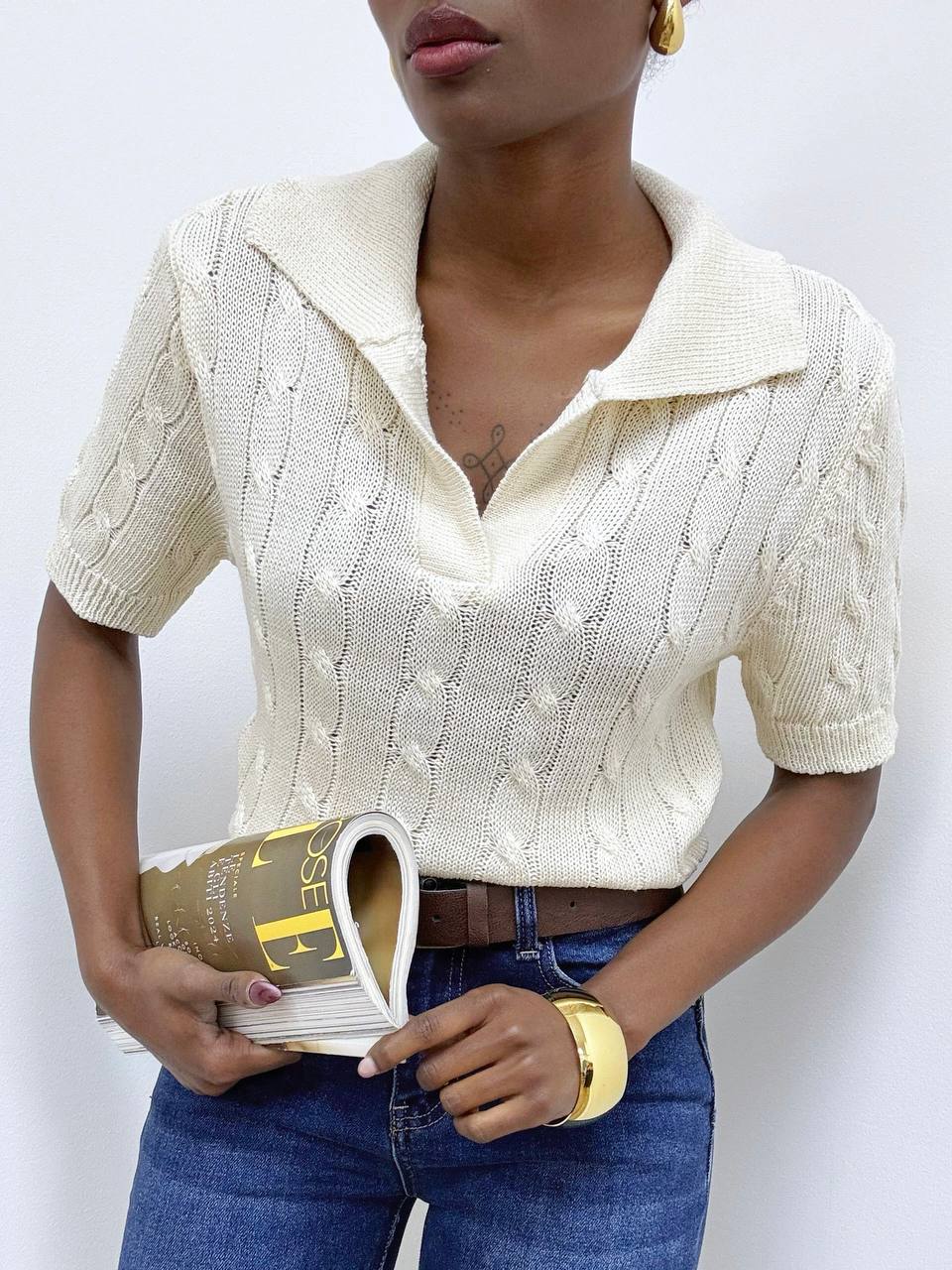 POLO SOFISTICATA INTRECCIATA BURRO