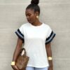 T-shirt a girocollo a tinta unita con manica lavorata.
