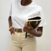 Questa t-shirt bianca è un capo essenziale e versatile, realizzata in un tessuto morbido e traspirante, perfetta per garantire comfort e freschezza durante tutto il giorno. Il design presenta maniche corte e uno scollo tondo classico, che ne fanno un pezzo basico intramontabile nel guardaroba di ogni stagione. La sua linea semplice e pulita permette di abbinarla facilmente a una vasta gamma di outfit, rendendola ideale sia per look casual che per abbinamenti più sofisticati.