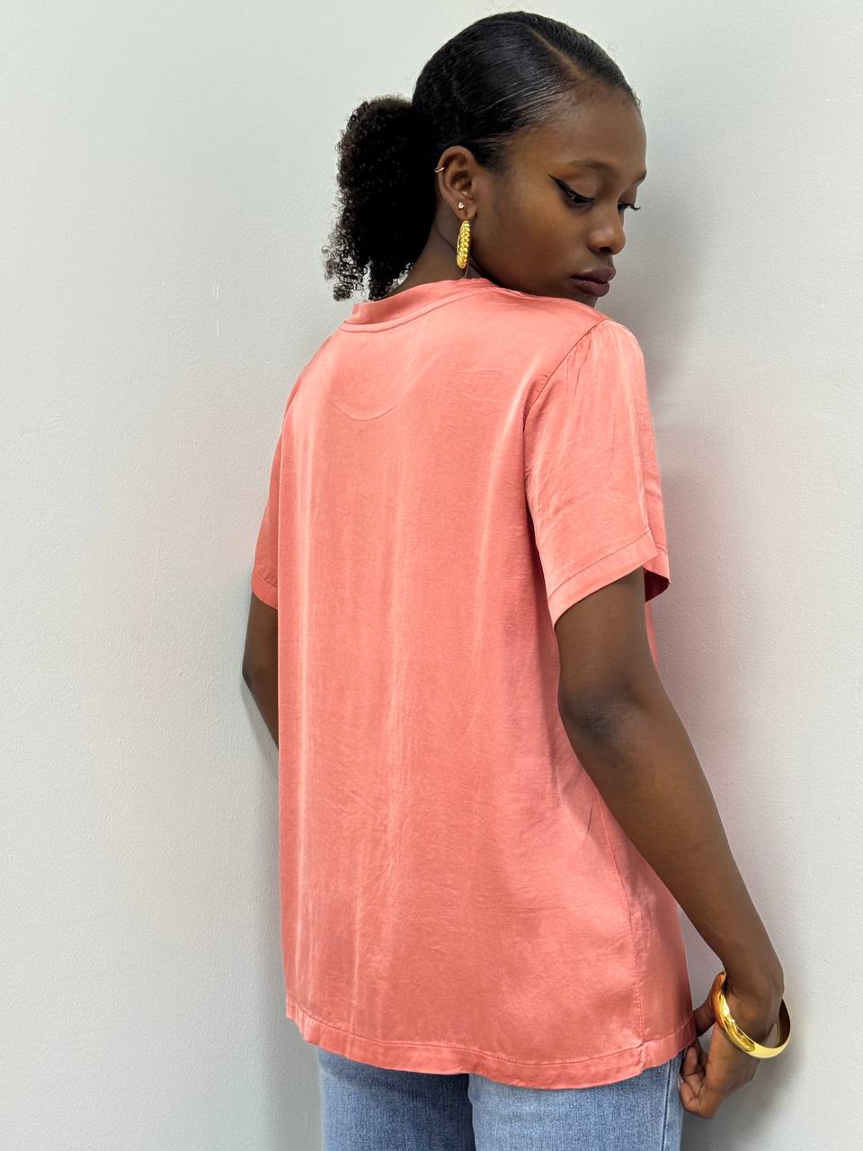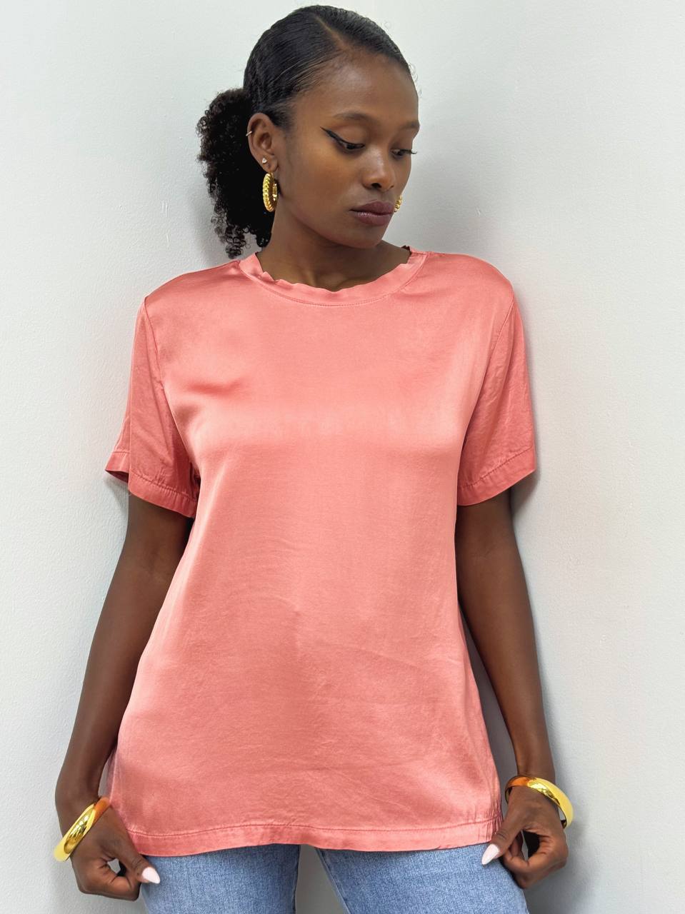 T-shirt in viscosa a girocollo a tinta unita leggermente elasticizzata perfetta per tutte le stagioni.