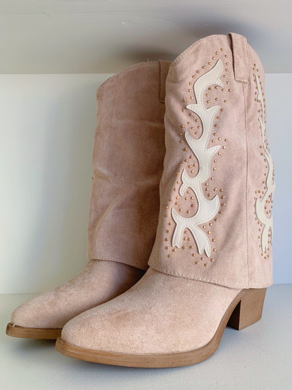 Stivali a punta tacco cubano lamellato e linguette laterali sul lato superiore con calzata regolare, scamosciati con gambale morbido e sottile. Calzata regolare.