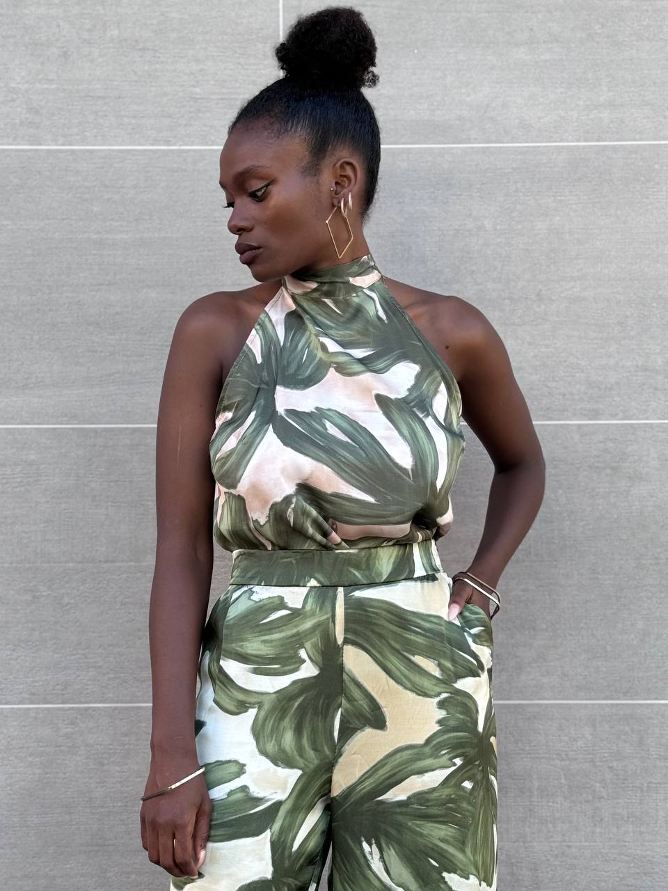 Top con scollo alla americana con dettaglio di stampa fiorata.